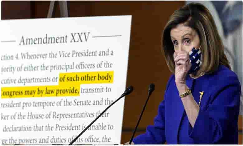 అమెరికా అధ్యక్షుడు ట్రంప్ ను పదవి నుంచి తొలగించేందుకు యూఎస్ హౌస్ స్పీకర్ నాన్సీ పెలోసీ సమాయత్తమయ్యారు. ఆయనను పదవీ చ్యుతుడ్ని చేయడానికి వీలుగా 25 వ సవరణను ఉపయోగించి ఓ కమిషన్ ను ఏర్పాటు చేస్తామని ఆమె ప్రకటించారు. ప్రస్తుత అధ్యక్షుడు ప్రజల సేవలో లేదా తన విధినిర్వణహలో విఫలమయ్యాడని ఈ కమిషన్ నిర్ధారించిన పక్షంలో.. దేశ ఉపాధ్యక్షుడే తాత్కాలిక అధ్యక్ష పదవిని చేబట్టేందుకు ఈ సవరణ వీలు కల్పిస్తుంది. కోవిడ్ బారిన పడిన ట్రంప్..ప్రవర్తనను, ఆయన ఆరోగ్యాన్ని పెలోసీ ప్రశ్నించారు. అసలు మీరు సేవ చేయగల్గుతారా ? మీ హెల్త్ అందుకు సహకరిస్తోందా ? కోవిడ్ చికిత్స అనంతరం మీ ఆరోగ్యం ఎలా ఉంటోంది తదితర సమాచారాన్ని మీ ప్రభుత్వం తెలియజేయాల్సి ఉంది అని ఆమె అన్నారు. కరోనా వైరస్ చికిత్స పొందిన అనంతరం ట్రంప్ తీరు మరో రకంగా ఉంటోందన్న అనుమానాన్ని ఆమె వ్యక్తం చేశారు.