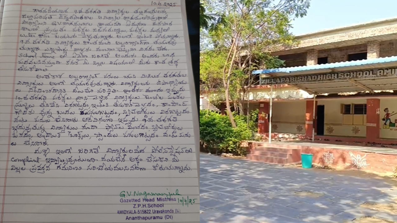 ఎన్నిసార్లు మంచిగా చెప్పిన పిల్లలు వినడం లేదని… మంచినీళ్లు తాగొస్తామని బయటకు వెళ్లి ఇంటికి వెళ్లిపోతున్నారని హెచ్ఎం నాగ మంజుల ఆవేదన వ్యక్తం చేశారు. పదవ తరగతి పరీక్షలు రాసిన విద్యార్థులు పాఠశాలలో బెంచీలు విరగ్గొట్టి, స్విచ్ బోర్డులను పగలగొట్టి, ఫ్యాన్ రెక్కలు ఒంచేసి… క్లాస్ రూమ్ లో నానా బీభత్సం చేస్తున్నారని వాపోయారు. పిల్లలపై తల్లిదండ్రులు కాస్త శ్రద్ధ పెట్టి వారిని సరైన దారిలోకి తీసుకురావాలని హెచ్ఎం నాగమంజుల తల్లిదండ్రులకు విన్నవించారు… ఇలాగే అల్లరి, చిల్లరగా… భరించలేని స్థాయిలో విద్యార్థులు ఉంటే పోలీస్ స్టేషన్లో ఫిర్యాదు చేయాల్సి వస్తుందని హెచ్ఎం నాగమంజుల… విద్యార్థుల తల్లిదండ్రులకు రాసిన లేఖ వైరల్ అవ్వడం అందర్నీ ఆశ్చర్యపరుస్తుంది.