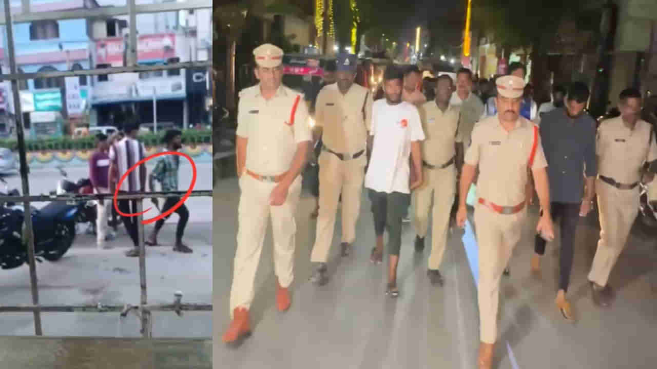 విక్టరీ వైన్ షాపు వద్ద కత్తులతో హల్ చల్ చేసి భయాందోళనకు గురి చేసిన రౌడి షిటర్ ఫిరోజ్, సయ్యద్ భాషల వీడియోలు సోషల్ మీడియాలో వైరల్ కావడంతో స్పందించిన పోలీసులు ఇద్దరు యువకుల్ని అదుపులో తీసుకున్నారు. వారిపై మారణాయుధాలు వాడకంతో పాటు ఇతర సెక్షన్స్ల కింద కేసు నమోదు చేసి.. ఈస్ట్ పోలీస్ స్టేషన్ నుంచి కోర్టు ప్రాంగణం వరకు నడిపించుకుంటూ తీసుకెళ్లారు. అందరూ చూసేలా చేతులకు బేడీలు వేసి రోడ్డుపై నడుచుకుంటూ తీసుకెళ్లి కోర్టులో హాజరు పరిచారు.