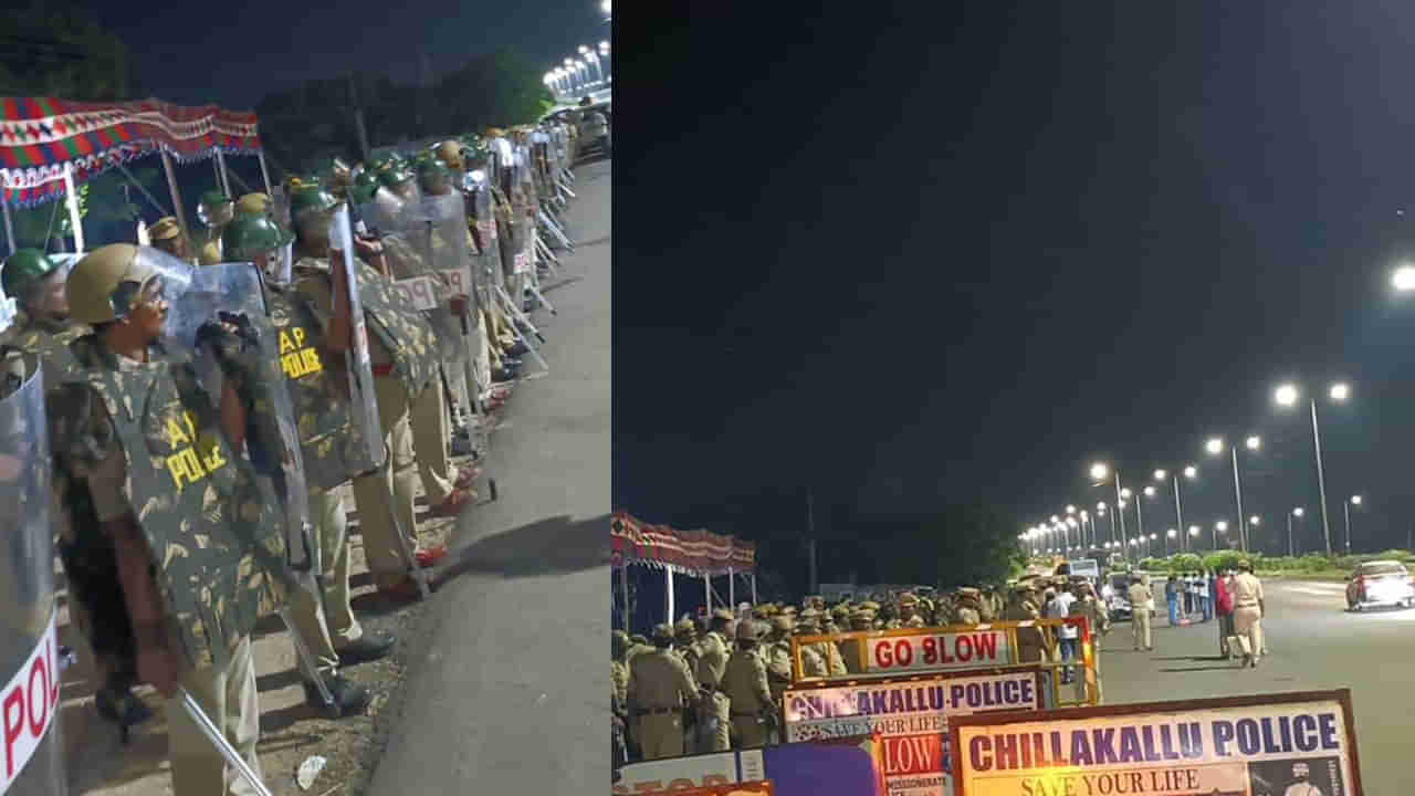 #WATCH | Barricading & checking underway by Andhra Pradesh Police near the Andhra-Telangana border in view of the 'Chalo Rajahmundry' call given by Hyderabad IT employees