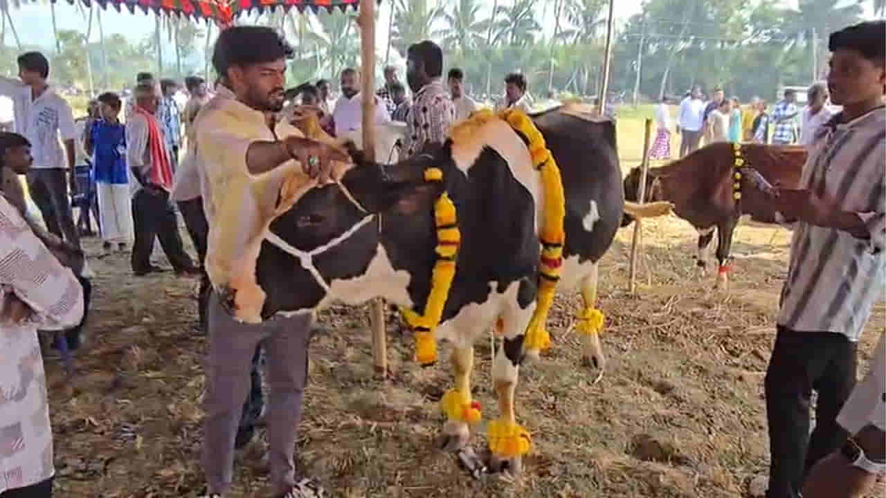 సంక్రాంతికి కోళ్ల పందేలు… ఎడ్ల పోటీలు.. గుర్రం పోటీలు.. కామన్. కానీ పశువుల సహకారంతో రైతులు పండించిన పంట చేతికి వచ్చే సమయంలో చేసుకునే పండగ సంక్రాంతికి ఆ పాడి పశువులను ఎంతవరకు గుర్తుంచుకుంటున్నాం. మహాలక్ష్మి అమ్మవారి స్వరూపమైన గోమాతను పండుగ సందర్భంగా ప్రత్యేకంగా గుర్తించే కార్యక్రమం అనకాపల్లి జిల్లాలో జరిగింది. కనుమ పండుగ సందర్భంగా మునగపాకలో ఉత్సాహంగా గోమాతల అలంకరణ, ఆరోగ్య పోటీలు నిర్వహించారు. ఎవరైతే తమ గోమాతకు దాని బాగోగులను చూసుకుంటూ ఆరోగ్యకరంగా పెంచుతూ.. పండుగ పూట ప్రత్యేకంగా అలంకరణ చేస్తారో.. వారికి నగదు బహుమతులు అందించారు.