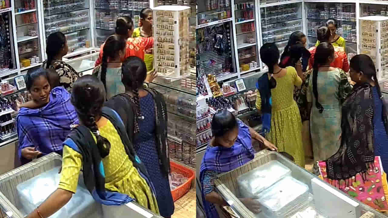 వాసవి కలెక్షన్స్ అని బోర్డు.. దగ దగా అని మెరిసే ఆభరణాలు కనిపించడంతో.. చూపు దాని వైపు పడంది.. ఇంకేముంది.. లేడీ గ్యాంగ్ అంతా.. అటువైపు అడుగులు వేశారు.. గోల్డ్ షాప్ అనుకుని రోల్డ్ గోల్డ్ షాపులో వెళ్లిన ఆ కిలాడీ మహిళలు.. చేతివాటం చూపించారు. ఈ షాకింగ్ ఘటన ఏపీలోని శ్రీ సత్య సాయి జిల్లా ధర్మవరంలో జరిగింది. శ్రీ సత్య సాయి జిల్లా ధర్మవరం పట్టణంలోని వాసవి కలెక్షన్స్ దుకాణంలోకి కస్టమర్లు మాదిరిగా ఆరుగురు మహిళలు ప్రవేశించారు. తీరా వచ్చాక తెలిసింది.. అది గోల్డ్ షాప్ కాదు ఫ్యాన్సీ షాపు అని.. ఎట్లాగూ వచ్చాము కదా అని… ఆరుగురు మహిళల్లో ఇద్దరు సేల్స్ గర్ల్ ను మాటల్లో పెట్టగా.. మరో ఇద్దరు సేల్స్ గర్ల్ కు కనిపించకుండా ఉండేందుకు అడ్డుగా నిలబడ్డారు. ఇక మిగిలిన ఇద్దరు మహిళలు షాపు అరలోని రోల్డ్ గోల్డ్ ఆభరణాలు, వస్తువులు సర్దేశారు.
