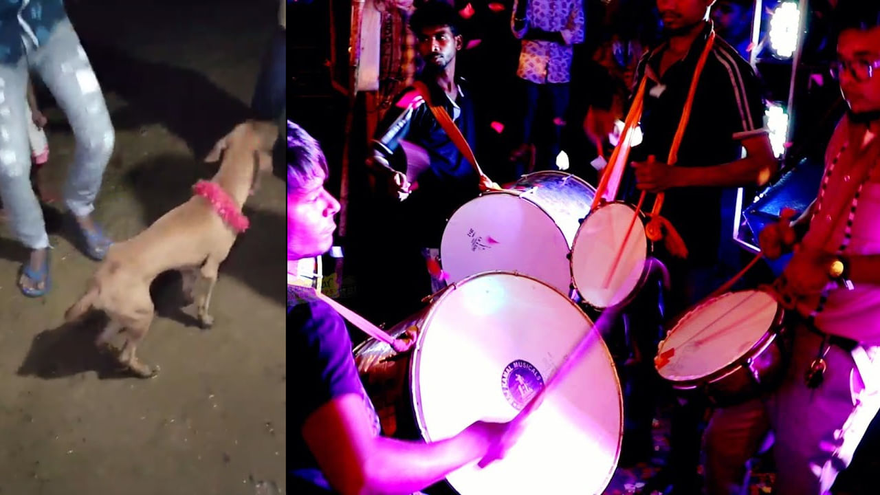 అంతే తనకు మూడ్ వచ్చినట్టుంది యువతతో కలిసి అడుగులో అడుగేస్తే స్టెప్పులు వేసింది. డీజే సౌండ్స్కి తగ్గట్టు లయబద్దంగా బాడీ నీ ఊపుతూ అందరినీ ఆశ్చర్యానికి గురిచేసింది. కుక్క డాన్స్ చేయటాన్ని చూసిన స్థానికులు మొదట షాక్ అయ్యారు. తరువాత తేరుకొని కుక్కకు మెడలో దండ వేసి దానితో కలిసి చిన్నారులు, యువత కాసేపు డాన్సులు చేశారు. కుక్క డాన్స్ చేయటాన్ని కొందరు తమ మొబైల్ ఫోన్ కెమెరాలలో బంధించారు. ఇపుడు ఈ కుక్క డాన్స్ చేసిన వీడియో సోషల్ మీడియాలో వైరల్ అవుతోంది.