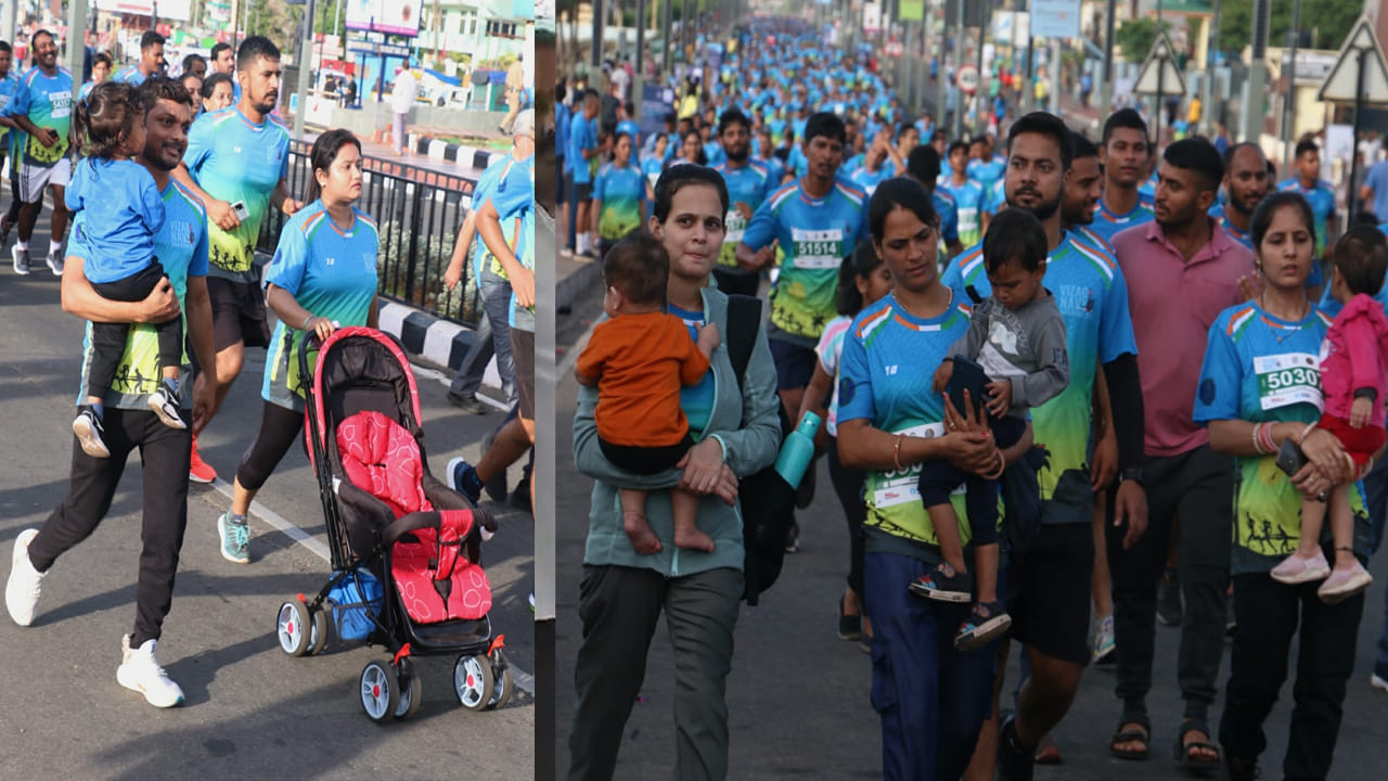 Navy Marathon: కడలి అలల హోరులో.. నేవీ మారథాన్ పరుగు జోరు.. మామ్ అండ్ డాడ్తో మేము సైతం అన్న చిన్నారులు..