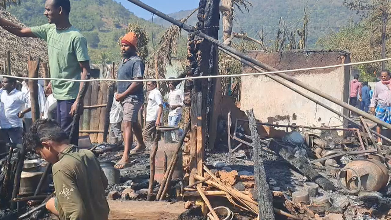 విద్యుదాఘాతం వల్ల ప్రమాదం జరిగినట్లు అధికారులు చెప్పారు. ఇళ్లలోని గ్యాస్ సిలిండర్లు లీకై మంటలు పెద్దవయ్యాయని తెలిపారు.. తుని నుంచి ఫైర్ ఇంజన్ వచ్చేసరికే ఊరు బూడిదైంది. ప్రాణ నష్టం జరక్కపోవడంతో అంతా ఊపిరి పీల్చుకున్నారు. ఆస్తినష్టం రూ.అరకోటికి పైనే ఉంటుందని ప్రాథమిక అంచనా.. బాధితులకు అన్న విధాల ఆదుకుంటామన్నారు స్థానిక ఎమ్మెల్యే వరపుల సత్యప్రభ… కాలి బూడిదైన ఇళ్ల స్థలాల ప్రాంతాన్ని పరిశీలించారు స్థానిక ఎమ్మెల్యే సత్యప్రభ, రాజ్యసభ సభ్యుడు సానా సతీష్, కూటమినేతలు.. బాధితులకు నిత్యవసరాలు పంపిణీ చేశారు. పండుగకు ముందు ఇళ్లు కాలి బూడిదవ్వడంతో.. గిరిజనులు కన్నీరుమున్నీరుగా విలపిస్తున్నారు.