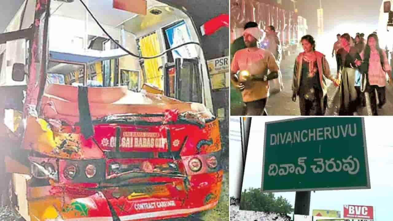 పోలీసులు తెలిపిన వివరాల ప్రకారం.. నల్గొండ జిల్లా గుండ్లపల్లి ప్రభుత్వ పాఠశాల, కళాశాలకు చెందిన సుమారు 80 మంది విద్యార్థులు, 10 మంది ఉపాధ్యాయులు, సిబ్బందితో కలిసి మూడు రోజుల క్రితం రెండు ప్రైవేటు ట్రావెల్స్ బస్సుల్లో విహారయాత్రకు వెళ్లారు. టూర్లో బాగంగా అరకు, పాడేరు సహా మిగతా టూరిస్ట్ ప్రాంతాలను సందర్శించి తిరిగి స్వగ్రామానికి బయల్దేరారు. అయితే సరిగ్గా రాజమహేంద్రవరం దివాన్చెరువు వద్దకు రాగానే ఒక గేదె అడ్డు రావడంతో ముందు వెళ్తున్న ట్రావెల్ బస్సు డ్రైవర్ సడన్బ్రేక్ వేశాడు. దీంతో వెనుక పిల్లలతో ప్రయాణిస్తున్న రెండు బస్సులు, మరో ట్రావెల్ బస్సు ఒకదానినొకటి ఢీకొన్నాయి.