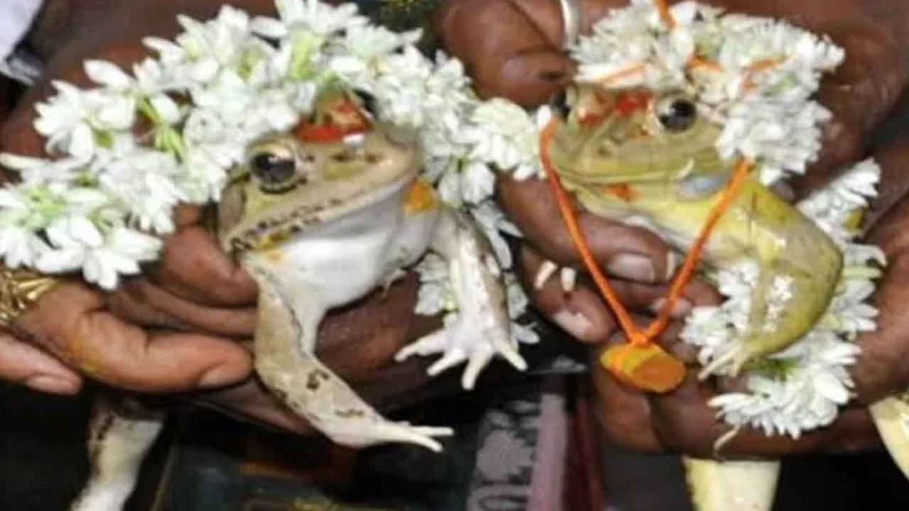 Andhra Pradesh: డాక్టర్ బీఆర్ అంబేడ్కర్ కోనసీమ జిల్లా కొత్తపేట మండలం వాడపాలెంలో మంగళవారం ఘనంగా కప్పల పెండ్లి జరిపించారు. కప్పలకు పెండ్లి మహోత్సవం ఘనంగా నిర్వహించారు. అచ్చు మనుషుల పెళ్లిలానే వీటికి వివాహం జరిపించారు.