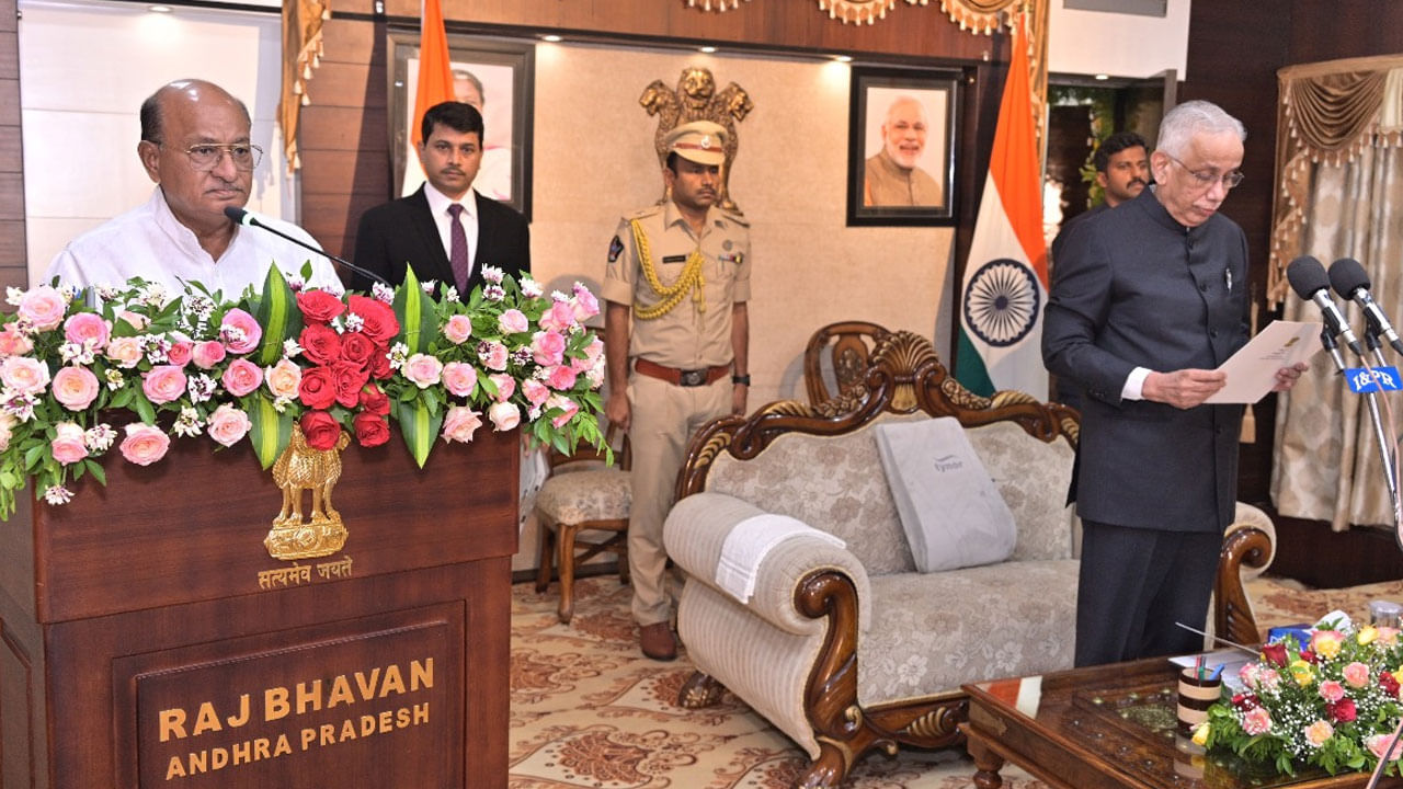 Governor of Andhra Pradesh Sri S. Abdul Nazeer has administered oath to Sri Gorantla Butchaiah Chowdary, MLA, as Pro tem Speaker at a programme held in Durbar Hall at Raj Bhavan on Thursday.@GORANTLA_BC pic.twitter.com/YJvVBItNf7