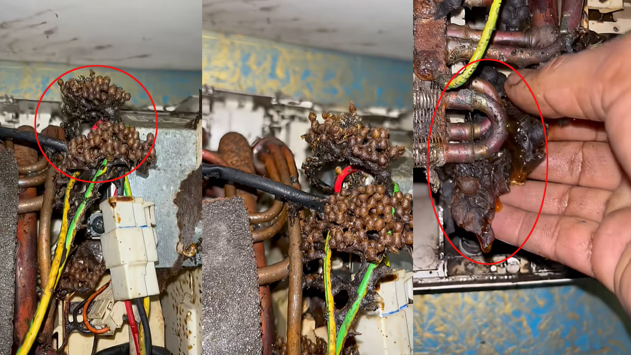ఏసీ కూలింగ్ తగ్గడంతో సర్వీసింగ్ కోసం వెళ్ళిన టెక్నీషియన్లకు ఊహించని దృశ్యం ఎదురైంది. యూనిట్ లోపల భారీ తేనెగూడు కనిపించింది. రెండు సంవత్సరాలు సర్వీసింగ్ చేయించకపోవడం, ఇన్స్టలేషన్ సమయంలో సరిగా మూయని రంధ్రాల వల్ల ఈ సమస్య తలెత్తింది. ఇది ఏసీ పనితీరును దెబ్బతీసి, నీటిని బయటికి వెళ్లనీయకుండా చేసింది.