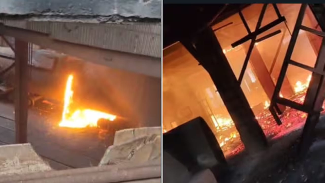 విశాఖ స్టీల్ప్లాంట్లో అగ్నిప్రమాదం చోటు చేసుకుంది. SMS -2లో మంటలు ఎగసిపడుతున్నాయి. సమాచారం అందుకున్న వెంటనే ఘటనాస్థలికి చేరుకున్న ఫైర్ సిబ్బంది.. వాటిని ఆర్పేందుకు ప్రయత్నిస్తున్నారు. SMS -2 విభాగంలోని మిషన్-2లో మంటలు ఎగసిపడుతున్నాయి. మిషన్-2లో ఆయిల్ లీకై ఘటన జరిగింది. నిప్పు రవ్వలు ఆయిల్పై పడి కేబుల్, మిషనరీ నుంచి మంటలు చెలరేగాయి. ప్రమాదం కారణంగా ద్రవరూపంలో ఉన్న ఉక్కు అంతా బయటకు వచ్చేసింది. ఆస్తినష్టం భారీగానే ఉండొచ్చని చెప్తున్నారు. ప్రాణ నష్టం తప్పినట్టు ప్లాంట్ సిబ్బంది తెలిపారు.