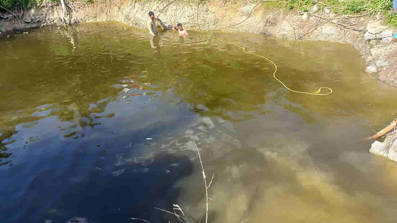 ఉన్నపళంగా భార్య ఇద్దరు బిడ్డల్ని బావిలోకి తోసేసాడు. భార్యాబిడ్డలు ఆత్మహత్య చేసుకున్నారని కట్టుకథ అల్లే ప్రయత్నం చేశాడు. ఈ లోపు చుట్టుపక్కల పొలాల్లో ఉన్నవాళ్లు చూడడంతో డామిట్ కథ అడ్డం తిరిగిందనుకున్నాడు. అక్కడ ఉన్న స్థానికులు బావి దగ్గరికి చేరుకోవడంతో ఏం చేయాలో తెలియక కొత్త నాటకానికి తెర తీశాడు. స్కూటీ తాళాల ను ఆయుధంగా మార్చుకొని గొంతు కోసుకొని సూసైడ్ అటెంప్ట్ కు ప్రయత్నం చేశాడు. బావిలో నుంచి భార్య హేమంత కుమారి, పెద్ద కూతురు తనుశ్రీ డెడ్ బాడీలను బయటకు తీసి గట్టుపై ఉంచి చుట్టుపక్కనున్న పశువుల కాపరులు పొలం పనుల్లో ఉన్నవాళ్లు.. చిన్న కూతురు తేజశ్రీ డెడ్ బాడీ గుర్తించేందుకు విశ్వప్రయత్నం చేసారు.