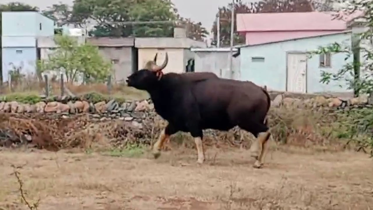 మార్కాపురం జిల్లా తర్లుపాడు మండలంలో అడవి దున్న ప్రతక్షమైంది. బోడిచెర్ల గ్రామంలో అడవి నుంచి దారితప్పి వచ్చిన ఓ బలిష్టమైన అడవి దున్న కలకలం రేపింది. బలమైన శరీరం, చురుకైన కదలికలతో గ్రామంలో సంచరించడంతో స్థానికులు భయాందోళనకు గురయ్యారు. బాగా బలిష్టంగా ఉండి కాళ్లు తెల్లగా ఉండడంతో వెంటనే అటవీ శాఖ అధికారులకు సమాచారం ఇచ్చారు గ్రామస్థులు. గ్రామస్థులు భయపడి కేకలు వేస్తుండటంతో సమీపంలోని పొలాల్లోకి పారిపోయింది అడవి దున్న. సమాచారం అందుకున్న ఫారెస్ట్ రేంజ్ అధికారి సిబ్బందితో గ్రామానికి చేరుకొని ప్రజలతో మాట్లాడారు. అడవి దున్నకు హాని కలిగించే పనులు చేయరాదన్నారు కౌన్సిలింగ్ ఇచ్చారు. జంతువు నుంచి ఎలాంటి ప్రమాదం లేకుండా చర్యలు తీసుకుంటామని గ్రామస్థులకు హామీ ఇచ్చారు…
