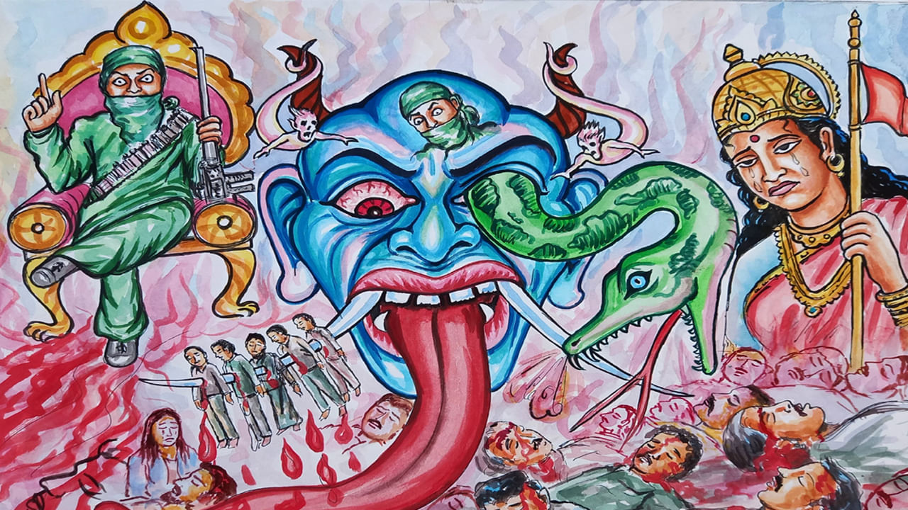 ఉమ్మడి కర్నూలు జిల్లాకు చెందిన ప్రముఖ చిత్రకారుడు కోటేష్ అనేక సామాజిక, పౌరాణిక, సాంస్కృతిక, దేశభక్తులు, వీర మరణం పొందిన జవాన్లు, చిత్రాలను ఆలోచింపజేసే రీతిలో వేస్తూ ఉంటాడు. ఇలా వందల చిత్రాలు గీసి ఎందరో మన్నలతోవపాటు అనేక అవార్డులు పొందారు. ఇప్పుడు తాజాగా భారతీయ పర్యాటకులపై ఉగ్రవాదుల దాడిని వ్యతిరేకిస్తూ ఈ అద్బుతమైన చిత్రం గీశారు. జమ్ము కాశ్మీర్లో జరిగిన ఉగ్రవాదుల దాడిలో 26 మంది భారతీయులు చనిపోవడంపై చలించిపోయిన ఆయన… తన అవేదనను చిత్రం రూపంలో తెలియజేశాడు. ఈ చిత్రంలో ఉగ్రవాదుల దాడిలో చనిపోయిన 26 మంది పర్యాటకులు, ఉగ్రదాడిలో చనిపోయిన నిర్జీవంగా పడిపోయిన భారతీయిలను చూస్తూ కన్నీరు పెట్టిన భరత మాతను మనం చూడవచ్చు, అంతే కాకుండా ఈ మారణకాండ చూస్తూ ఓ పాకిస్తాని ఉగ్రదాది వెకిలి నవ్వు నవ్వుతూ ఉండే డ్రాయింగ్ను కోటేశ్వర్రావు ఎంతో అద్భుతంగా వేశాడు. ఈ డ్రాయింగ్తో తన మనసులో ఉన్న ఆవేదనను ఆయన తెలియజేశారు.