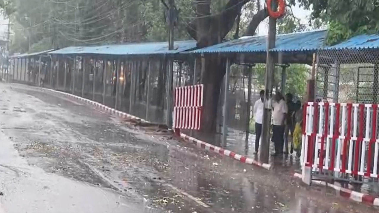 నంద్యాల జిల్లా శ్రీశైలం మండలంలో అర్ధగంట పాటు వర్షం దంచికొట్టింది కుంభ వర్షం కురిసింది. శ్రీశైలం, సున్నిపెంటలలో ఎడ తెరిపి లేకుండా భారీ వర్షం కురిసింది. వర్షం ధాటికి క్షేత్రంలో అలానే సుండిపెంటలో ప్రధాన విధులన్ని జలమయమయ్యాయి. ఉదయం నుంచి ఉక్కపోతగా ఉన్నా.. మద్యాహ్నానికి ఒక్కసారిగా మబ్బులతో భారీ వర్షం మొదలైంది. వర్షం కారణంగా శ్రీ స్వామి అమ్మవార్ల దర్శనార్థం శ్రీశైలం క్షేత్రానికి వచ్చిన భక్తులు వసతి గృహాలకు పరిమితమయ్యారు. ఎండ ఉక్కపోతకు గురైన స్థానికులు భక్తులు భారీ వర్షం పడటంతో కొద్దిపాటి ఉపశమనం పొందారు. ఉరుములు మెరుపులు ఈదురుగాలితో వర్షం మొదలవడంతో ముందస్తుగా విద్యుత్ అధికారులు శ్రీశైలం మండలంలో విద్యుత్తిని నిలిపివేశారు. మరోవైపు ఈ రోజు ఆరుద్ర నక్షత్రం సందర్భంగా ఆది దంపతులు స్వర్ణ రధంపై ఊరేగారు.