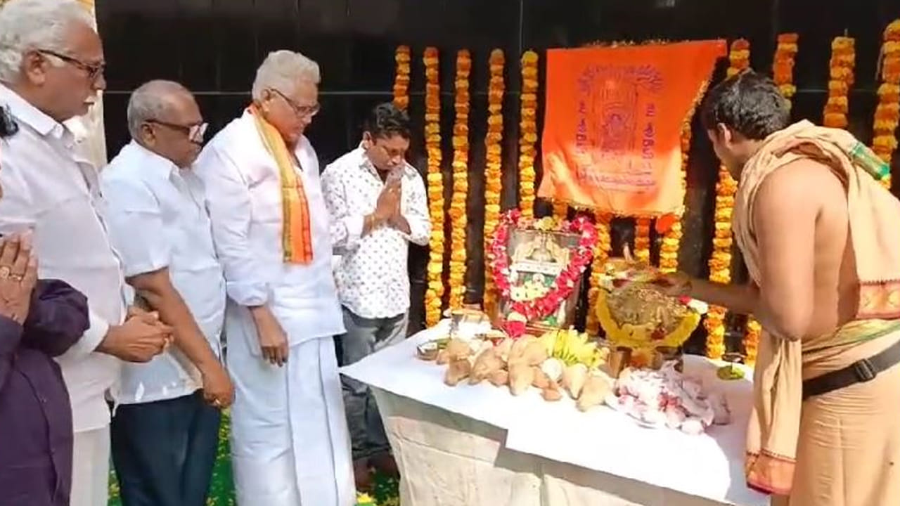 ఏలూరు, జనవరి 22: భారతదేశం యావత్తు రామనామస్మరణలతో మర్మోగిపోయింది. ఎక్కడ చూసినా.. ఎటువైపు వెళ్లిన శ్రీరామ అనే భజనలతో ఆధ్యాత్మిక శోభ వెల్లి విరిసింది. ఉమ్మడి పశ్చిమగోదావరి జిల్లా వ్యాప్తంగా ఆలయాలలో ఆధ్యాత్మిక శోభతో ఉట్టి పడుతోంది. పలు ఆలయాలలో హనుమాన్ చాలీసాలు, రామాయణ పారాయణాలు, కాషాయ జెండాలతో శోభాయాత్రలు ఘనంగా నిర్వహించారు. ఇందులో భాగంగా ఇటీవల విడుదలైన హనుమాన్ సినిమా థియేటర్ల వద్ద సీతారామ లక్ష్మణ సహిత ఆంజనేయునికి పూజలు నిర్వహించారు. జంగారెడ్డిగూడెంలో సౌభాగ్య థియేటర్లో హనుమాన్ సినిమా ప్రదర్శిస్తున్న నేపథ్యంలో భక్తులు ప్రత్యేక పూజలు నిర్వహించారు. ఈ పూజలలో ఉమ్మడి పశ్చిమగోదావరి జిల్లా మాజీ డీసీసీ బ్యాంక్ చైర్మన్, సినీ నిర్మాత, థియేటర్ యజమాని ఐన కరాటం రాంబాబు పాల్గొన్నారు.