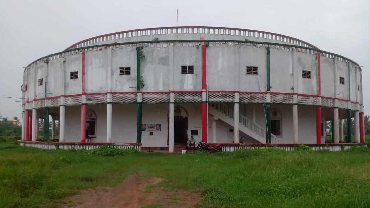 దీనికి మాజీ ఉప ప్రధానమంత్రి మొరార్జీ దేశాయ్ 1969లో శంకు స్థాపన చేశారు. బోర్లించిన గొడుగులా భవన పై కప్పు ఉంటుంది. మధ్యలో ఎక్కడా పిల్లర్లు కనిపించవు. దీనికి నాలుగు ద్వారాలు ఉండగా వాటిపైన వివిధ రకాల మతాలకు సంబంధించిన గుర్తులు పొందుపరిచి సర్వమత సమానత్వం చాటారు. అంతేకాక లోపల భారతదేశ ప్రధానులు, స్వాతంత్రసమరయోధుల ఫోటోలు, పలు రకాల గ్రంధాలు అందుబాటులో ఉన్నాయి. గాంధీజీ ఆశయాలను ప్రచారం చేసే కార్యకర్తలు ఇందులో విశ్రమించేందుకు గదులు కూడా నిర్మించారు. నిజంగా ఒక సామాన్య పల్లెటూరు అద్భుతమైన సాంకేతిక నిర్మాణ పరిజ్ఞానంతో ఇలాంటి ఒక భవనం నిర్మించటం మూర్తి రాజుకు గాంధీజీ పట్ల ఉన్న అంకితం భావానికి నిదర్శనం.