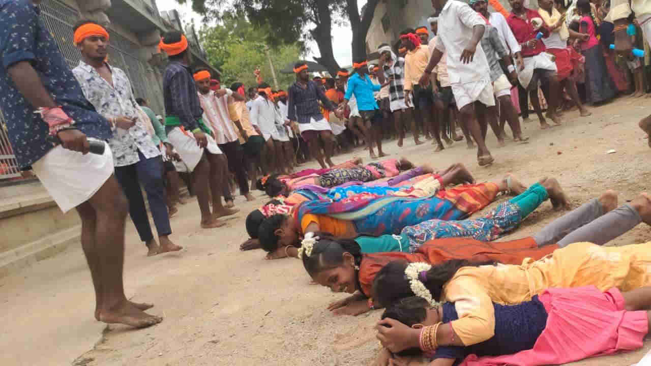 కర్నూలు జిల్లా వింత ఆచారాలకు, పద్ధతులకు నిలువు. ఈ జిల్లా వ్యాప్తంగా ఎక్కడో ఒక చోట ఎదో ఒక ఊరిలో వింత ఆచారాలు ఉంటూనే ఉంటాయి. కొన్ని సరదాగా ఉంటే కొన్ని సంప్రదాయంగా ఉంటాయి. ఇంకొన్ని ఇబ్బందికరంగా కుడా ఉంటాయి. ఇప్పుడు మనం అలాంటి వింత ఆచారాన్ని చూడబోతున్నాం. దీన్ని నమ్మకం అనాలో మూఢనమ్మకం అనాలో అర్థం కానీ పరిస్థితి. ఎందుకంటే ఆ ఊరి వాళ్ళు పాటించే ఆచారం అలాంటింది. పిల్లలు నేలపై పడుకోబెడితే వారిని దాటుకుంటూ,అనేకమంది గోవిందా గోవిందా అంటూ నామస్మరణాలు చేస్తూ పరుగులు పెడతారు. పరిగెత్తే వారు చేసే నినాదాలు పిల్లలు భయబ్రాంతులకు గురి చేస్తాయి. అయితే మిగిలిన ప్రజలకు అది ఓ ఆధ్యాత్మిక కార్యక్రమం. ఒక పక్క గుక్క తిప్పుకోలేక ఏడుస్తున్న చిన్నారుల గోడును పట్టించుకునే వారే ఉండరు. చిన్న పిల్లలే కాదు పెద్ద వారు కూడా నేలపై బొక్క బోర్లా పడుకుంటారు. కర్నూలు జిల్లా ఎమ్మిగనూరు మండలం వెంకటాపురం కాలనిలో కొలువై ఉన్న శ్రీ గుంటి రంగా స్వామి ఆలయంలో ఈ ఆచారాన్ని పాటిస్తున్నారు.