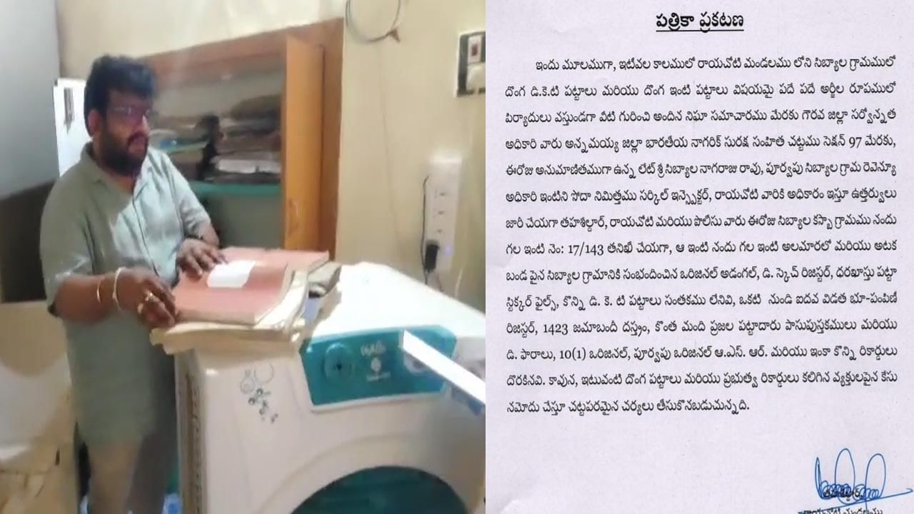 రెవెన్యూ శాఖలో అడ్డగోలుకు అడ్డువాకు ఉండదు. క్రింది స్థాయి ఉద్యోగం నుంచి ఉన్నత స్థాయి ఉద్యోగి వరకు ఏదో ఒక పంచాయతీలో ఇరుక్కుంటూనే ఉంటారు. ముఖ్యంగా భూ వివాదాలకు రెవెన్యూ శాఖ కేరాఫ్ అడ్రస్గా నిలుస్తుంది. ఇలా ఓ క్రింది స్థాయి ఉద్యోగి విచ్చలవిడిగా భూములను తన ఇష్టం వచ్చిన వారికి కట్టబెట్టి దొంగ పత్రాలను సృష్టించాడు. కానీ ఈ విషయం ఆ ఉద్యోగి చనిపోయిన తర్వాత వెలుగులోకి వచ్చింది. వివరాల్లోకి వెళితే..అన్నమయ్య జిల్లా రాయచోటి నియోజకవర్గంలో నకిలీ రెవెన్యూ రికార్డులు, డీకేటీ పట్టాలు తయారు చేస్తున్న రెవెన్యూ సిబ్బందిపై జిల్లా యంత్రాంగం కొరడా ఝుళిపింది.పక్కా సమాచారంతో జిల్లా కలెక్టర్ శ్రీధర్ ప్రత్యేక బృందాలను ఏర్పాటు చేసి నకిలీ దస్త్రాలను కలిగి ఉన్న సిబ్బంది ఇళ్లపై దాడులు చేయించారు.