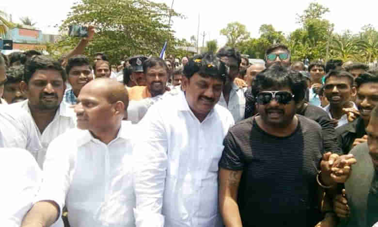 నర్సీపట్నం :ఎమ్మెల్యేగా గెలుపొంది నియోజకవర్గానికి వస్తున్న ఉమాశంకర్గణేష్కు తన సోదరులు పూరీ జగన్నాథ్, సాయిరాంశంకర్లు కూడా స్వాగతం పలికి అభినందనలు తెలిపారు. వీరు శుక్రవారం మండలంలోని వెంకన్నపాలెం చేరుకుని గణేష్కు శుభాకాంక్షలు తెలియజేశారు. అనంతరం కార్యకర్తలు, అభిమానులతో కాసేపు ముచ్చటించారు. వీరితో కరచాలనం చేయడంతో పాటు సెల్ఫీలు తీసుకునేందుకు జనం ఎగబడ్డారు. కాగా ప్రజలు రాజన్న రాజ్యం కోసమే సార్వత్రిక ఎన్నికల్లో నర్సీపట్నం నియోజకవర్గంలో వైసీపీకి ఉహించని విధంగా భారీ మెజార్టీ ఇచ్చారని సినీ దర్శకుడు పూరీ జగన్నాథ్ అన్నారు