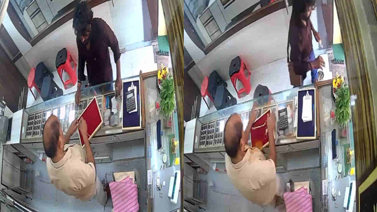 యజమాని ఏమరపాటుగా ఉన్న సమయంలో దుండగుడు తన బ్యాగులో తెచ్చుకున్న కారాన్ని తీసి ఒక్కసారిగా వెంకటేశ్వర్లు కళ్లలో కొట్టాడు. యజమాని తేరుకునేలోపే కళ్లముందు ఉన్న బంగారు ఆభరణాలను ఎత్తుకుని స్కూటర్పై పరారయ్యాడు. ఈ దారుణమంతా షాపులోని సీసీ కెమెరాల్లో రికార్డయింది. కళ్లలో కారం పడటంతో యజమాని ఆర్తనాదాలు చేయగా, స్థానికులు అక్కడికి చేరుకున్నారు. సమాచారం అందుకున్న స్థానిక పోలీసులు వెంటనే సంఘటనా స్థలానికి చేరుకుని సీసీ ఫుటేజీని స్వాధీనం చేసుకున్నారు. సుమారు లక్షల విలువైన బంగారం అపహరణకు గురైనట్లు యజమాని చెబుతున్నారు. అయితే ఎంత మొత్తం బంగారం పోయింది అనే దానిపై పోలీసులు ఆరా తీస్తున్నారు.