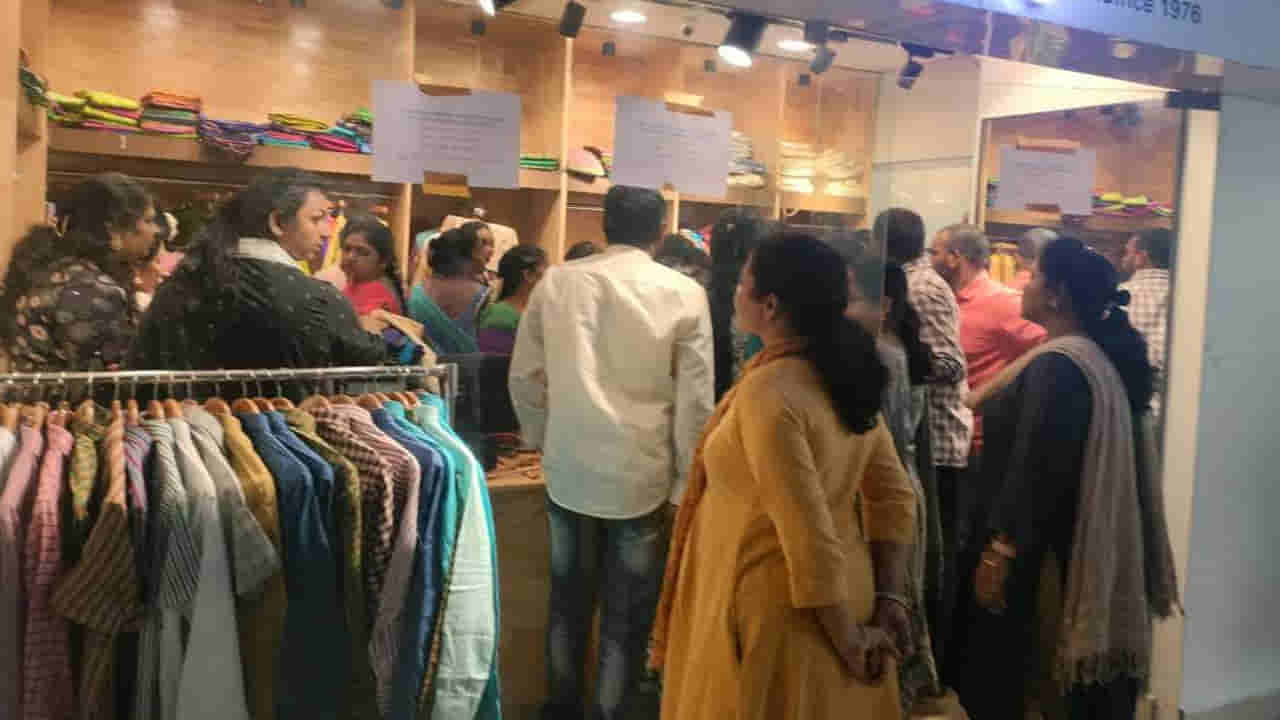 ఆంధ్రప్రదేశ్ సచివాలయంలో ఉద్యోగులు దుస్తులు కొనేందుకు తెగ ఎగబడ్డారు. సచివాలయం మూడో బ్లాక్ లో ఉన్న ఆప్కో ఔట్ లెట్ లో చేనేత వస్త్రాలు కొనడానికి బారులు తీరారు. ఎప్పుడూ ఖాళీగా దర్శనమిచ్చే ఆ స్టాల్ కు ఉద్యోగులు బారులు తీరారు. ముఖ్యంగా మహిళా ఉద్యోగులు భారీగా రావడంతో స్టాల్ మొత్తం నిండిపోయింది. సెక్రటేరియట్ లో తమ బాధ్యతల్లో బిజీగా ఉండే ఉద్యోగులు ఎప్పుడూ లేనివిధంగా ఆ స్టాల్ ను ప్రతి రోజూ సగానికిపైగా ఖాళీ చేస్తున్నారు.ఇక్కడ పెట్టిన ఆఫర్ మళ్లీ మళ్లీ రాదనుకున్నారో ఏమో గానీ పండగ సీజన్ కంటే ఎక్కువగా బట్టలు కొనేస్తున్నారు. దీంతో ప్రతి రోజూ కొత్త సరుకును ఆర్డర్ పెట్టి తీసుకొస్తున్నట్లు స్టాల్ నిర్వాహకులు చెప్పారు.స్టాల్ లో ఎప్పుడు చూసినా మహిళా ఉద్యోగులతో నిండిపోతూ ఉండటంతో ఎప్పుడు రావాలనే దానిపై ఫిక్స్డ్ టైం కూడా బోర్డులు పెట్టేసారు స్టాల్ నిర్వాహకులు.