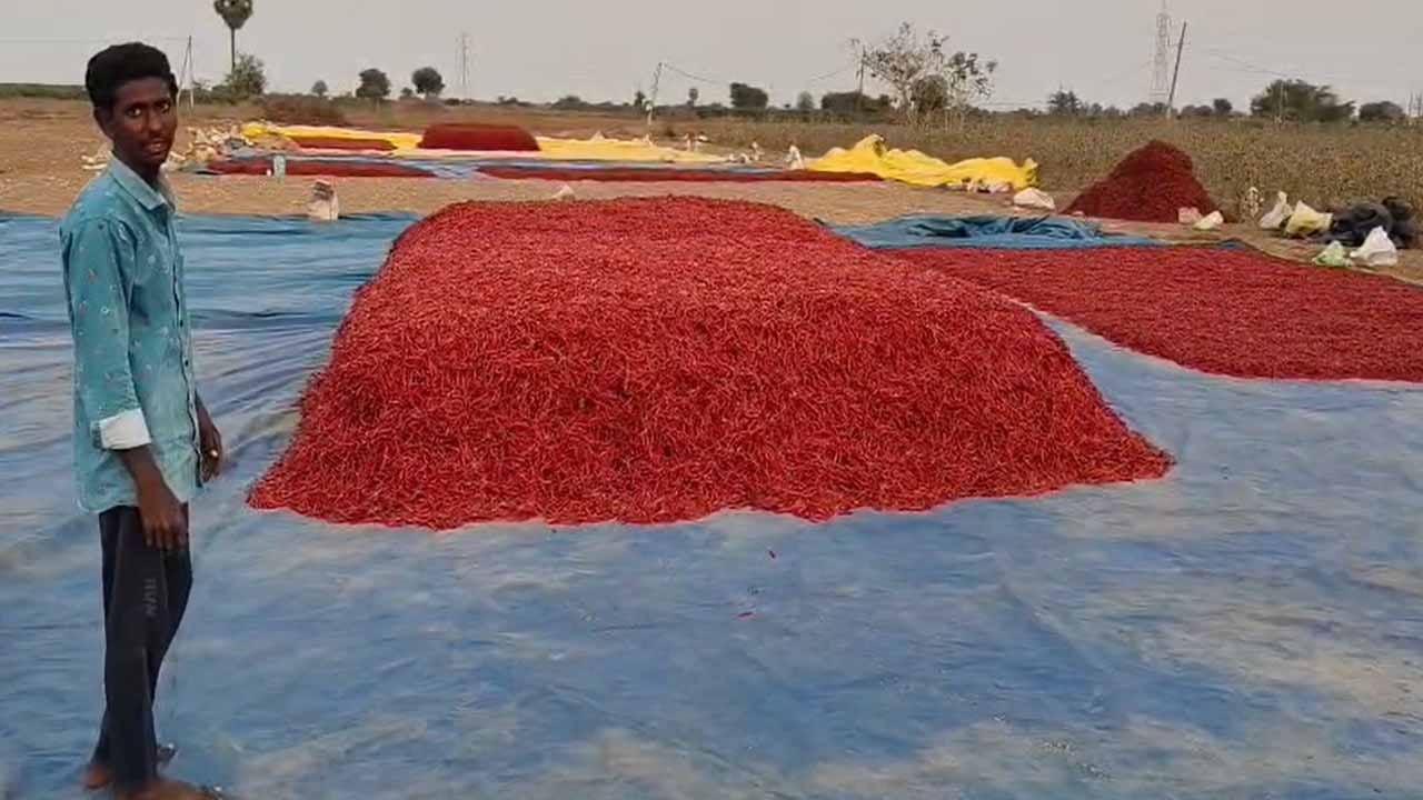ఏ ధరలు ఎక్కువుగా ఉంటే వాటిపై దొంగలు దృష్టి పెడుతున్నారు. బంగారం ధరలు పెరిగిపోవడంతో చెయిన్ స్నాచింగ్స్ పెరిగిపోతున్నాయి. ఈ క్రమంలోనే తాజాగా దొంగలు గుంటూరు మిర్చిపై ప్రత్యేక దృష్టి పెట్టినట్లు ఉన్నారు. గత కొంతకాలంగా మిర్చి ధరలు పెరుగుతూ ఉన్నాయి. క్వింటా మిర్చి ఇరవై ఐదు వేల రూపాయల ధర పలుకుతోంది. దీంతో రైతులు హర్షం వ్యక్తం చేస్తున్నారు. దిగుబడులు తగ్గినా మంచి ధర వస్తుండటంపై రైతులు సంతోష పడుతున్నారు. అయితే ఇది ఇలా ఉంటే దొంగలు మిర్చిపై దృష్టి పట్టారన్న వార్తలు రైతులకు కంటి మీద కునుకు లేకుండా చేస్తున్నాయి.