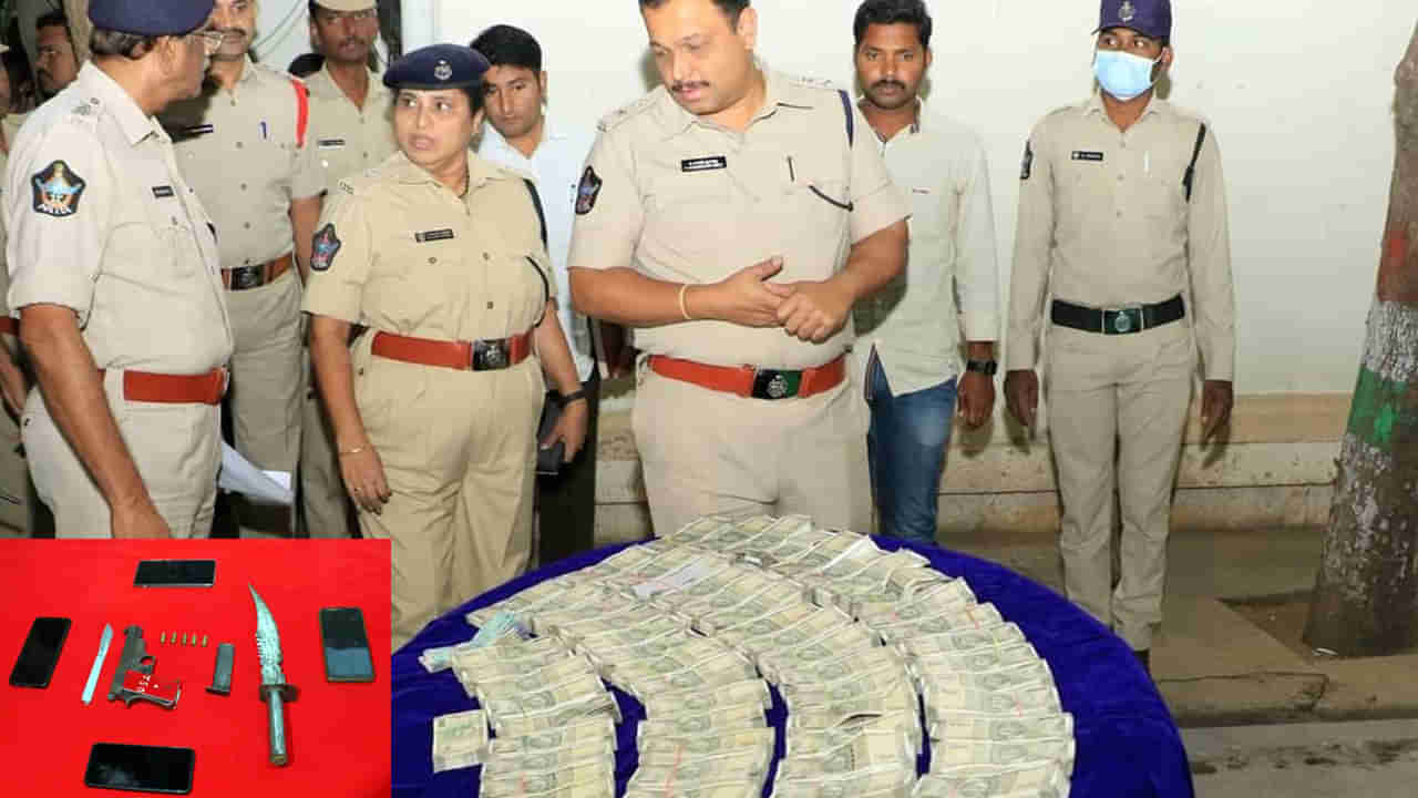 కృష్ణమూర్తి, మంజులతోపాటు వైఎస్ఆర్ జిల్లా పోరుమామిళ్లకు చెందిన నాగమణి, తమిళనాడుకు చెందిన లక్ష్మికాంతం, ఎన్టీఆర్ జిల్లా కొత్తపల్లికి చెందిన వెంకటనాగరాజు, అన్నమయ్య జిల్లా చిన్నజంగంపల్లికి చెందిన సాయిచరణ్, చిత్తూరు జిల్లా విజులాపురానికి చెందిన మోహన్హేమంత్, కొడతపల్లిమిట్ట వాసి మహమ్మద్ జావీద్, నక్కనపల్లికి చెందిన బిల్లింటి కార్తీక్, ఒడ్డుమడికి చెందిన శీనప్పనందకుమార్, జీడిగుట్ల నివాసి గురుమూర్తిహేమంత్, రాజ్పేట్కు చెందిన షేక్అమీన్లను పోలీసులు అరెస్ట్ చేశారు. మరో నలుగురు నిందితులు మురుగేష్, రమేష్ , భాస్కర్, వినయ్ కోసం పోలీసులు గాలిస్తున్నారు. నిందితుల నుంచి రూ.31.72 లక్షల నగదు, లైసెన్సు లేని తుపాకీ, ఐదు బుల్లెట్లు, రెండు కార్లు, రెండు కత్తుల్ని స్వాధీనం చేసుకున్నారు. గతంలో కృష్ణమూర్తి, మంజులపై పలు కేసులు నమోదయ్యాయి. కృష్ణమూర్తి కొందరు యువకుల సహకారంతో నేరాలకు పాల్పడుతున్నారని పోలీసులు గుర్తించారు.
