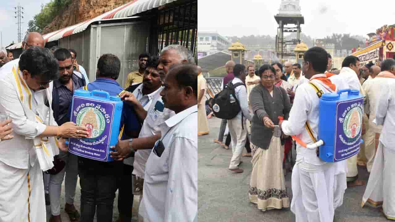 ఇందులో భాగంగానే.. శ్రీవారి సేవలో ఉన్న వారికి 10 లీటర్ల సామర్థ్యంతో ఉండే వాటర్ క్యాన్ ఇచ్చి.. రద్దీ అధికంగా ఉండే ప్రాంతాల్లో భక్తులకు తాగునీటిని అందించే విధంగా చర్యలు చేపడుతోంది. ప్రస్తుతం తిరుమలలో 15 క్యాన్లతో శ్రీవారి సేవకుల ద్వారా తాగునీటిని అందిస్తున్న టీటీడీ.. భక్తుల నుంచి వచ్చే స్పందనను బట్టి దీన్ని మరింత విస్తరించాలని నిర్ణయించింది.