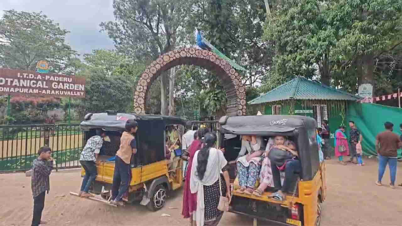 ప్రముఖ పర్యాటక ప్రాంతం అరకు లోయలో ఆహ్లాదకరమైన వాతావరణం కనిపిస్తోంది.. ఉదయం దట్టమైన పొగ మంచు.. ఆ తర్వాత కాస్త ఎండ.. ఆ తర్వాత దట్టంగా మబ్బులు కమ్ముకుని వర్షం..! గత కొంతకాలంగా ఇదే పరిస్థితి ఏజెన్సీలో చాలా చోట్ల ఉంది. దీంతో పర్యటకులు అరకులోయకి క్యూ కడుతున్నారు. దీంతో అరకు లోయలోని ప్రముఖ పర్యాటక ప్రాంతాలకు సందర్శకుల తాకిడి పెరిగింది. బొర్రా గుహలు, ట్రైబల్ మ్యూజియం, చాపరాయితోపాటు.. పద్మాపురం బొటానికల్ గార్డెన్స్ కు సందర్శకులు భారీగా పెరిగారు. అందరూ ఎవరి ఎంజాయ్మెంట్లో వాళ్ళు ఉన్నారు. అయితే పద్మాపురం గార్డెన్స్లో.. ఒక్కసారిగా అలజడి రేగింది. భయంతో పర్యాటకులు పరుగులు తీస్తున్నారు. అక్కడ ఏం జరుగుతుందో ఎవరికీ అర్థం కాలేదు. చివరకు.. అక్కడ ఓ భారీ నాగుపాము కనిపించినట్టు చెప్పారు కొంతమంది టూరిస్టులు. దీంతో వెళ్లి ఆ ప్రాంతం చూసేసరికి.. పెద్ద నాగు పాము పడగవిప్పి బుసలు కొడుతోంది. పర్యాటకుల అలికిడి పెరగడంతో.. మరింత కోపంతో మరింత పడగవిప్పి అటు ఇటు తిరుగుతుంది.