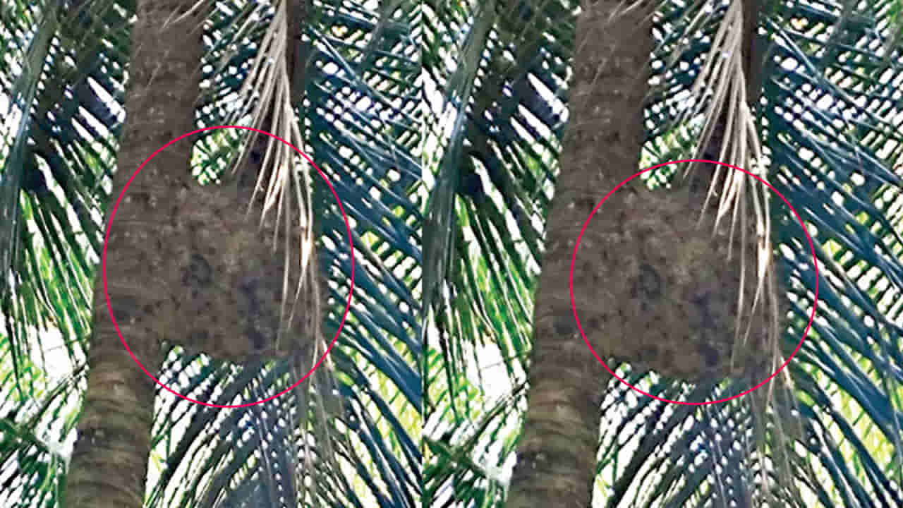 ఇది కందిరీగల గూడో లేక తేనెతుట్టెనో అనుకునేరు. విషపుటీగల గూడు చిన్నపాటి కందిరీగల్లా కనిపించే ఈ విషపుటీగలు చెట్లపై మట్టితో గుండ్రటి ఆకారంలో గూళ్లు కట్టుకుంటాయి. వాటి గూడు ఉన్న ప్రాంతంలో ఏదైనా కదలిక జరిగితే.. ఇవన్నీ ఒక్కసారిగా దాడి చేయడానికి దూసుకొస్తాయి. ఎంత జాగ్రత్తగా పారిపోయినా వీటి దాడి నుండి తప్పించుకోవడం చాలా కష్టం. తాజాగా ఇలాంటి విషపుటీగల ఉనికి నరసాపురం పరిసర ప్రాంతాలతో పాటు తీర గ్రామాల్లో గుర్తించారు. పేరుపాలెం సౌత్ పరిధిలోని ఉంగరాలవారి మెరక వద్ద ఓ కొబ్బరి చెట్టుకు పెద్ద గూడు కనిపించింది. వేములదీవి పడమర ప్రాంతంలోని కాపులకొడప గ్రామంలో మూడు రోజుల క్రితం వీటి దాడికి గురైన ఓ దంపతులు తీవ్ర గాయాలతో ఆసుపత్రిలో చికిత్స పొందుతున్నారు.