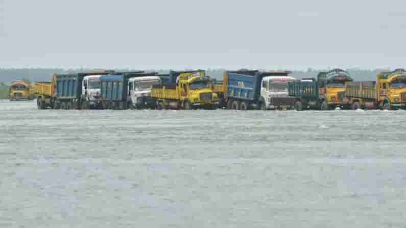 ఇప్పటివరకు 50 లారీలను బయటికి తీసుకొచ్చారు. పులిచింతల దగ్గర ఔట్ ఫ్లోను తాత్కాలికంగా ఆపినప్పటికీ వరద ప్రవాహం భారీగానే కొనసాగుతోంది. ఇంకా, ఐదు లక్షల క్యూసెక్కుల నీళ్లు దిగువకు వచ్చే అవకాశముందని అధికారులు అంచనా వేస్తున్నారు. దాంతో, లారీలను బయటికి తీసుకొచ్చేందుకు నది మధ్యలో బండ రాళ్లతో దారి ఏర్పాటు చేస్తున్నారు. అయితే, వరద ప్రవాహం కొనసాగుతుండటంతో లారీలను బయటికి తీసుకురావడం కష్టతరంగా మారింది. ఉదయం నుంచి రెస్క్యూ ఆపరేషన్స్ నిర్వహిస్తున్నా… ఇంకా, 125 లారీలు నదీ గర్భంలోనే ఉన్నాయి.