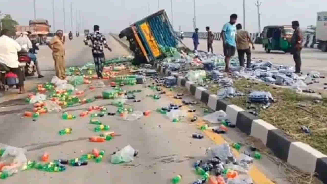 హైవేపై ఓ కూల్డ్రింక్లోడ్తో వెళ్తున్న వాహనం బోల్తా పడగా పోలీసులు వచ్చేలోపే సగం కూల్డ్రింక్ కేసులను స్థానికులు, వాహనదారులు ఎత్తుకెళ్లిన ఘటన ఆంధ్రప్రదేశ్లో చోటుచేసుకుంది. పోలీసులు తెలిపిన వివరాల ప్రకారం. కూల్డ్రింక్స్ లోడ్లో ఓ వాహనం విజయవాడ నుంచి మచిలీపట్నం వెళ్తుండగా టైర్ పేలడంతో అదుపుతప్పి రోడ్డుపై బోల్తా పడింది. ప్రమాదంలో వాహనంలో ఉన్న ముగ్గురు వ్యక్తులు గాయపడ్డారు. రోడ్డుపై వ్యాన్ బోల్తా పడడంతో ఆ వాహనంలో ఉన్న కూల్డ్రింక్ కేసులు మొత్తం రోడ్డుపై పడిపోయాయి. దాన్ని గమనించిన స్థానిక వాహనదారులు.. ప్రమాదంలో గాయపడిన వ్యక్తులను హాస్పిటల్కు తరలించాల్సింది పోయి..రోడ్డుపై పడిఉన్న కూల్డ్రింక్స్ను ఎత్తుకెళ్లే పనిలో పడ్డారు. ఇదే అదునుగా చూసుకొని అందినకాడికి కూల్డ్రింక్ కేస్లను తీసుకొని వెళ్లిపోయారు.