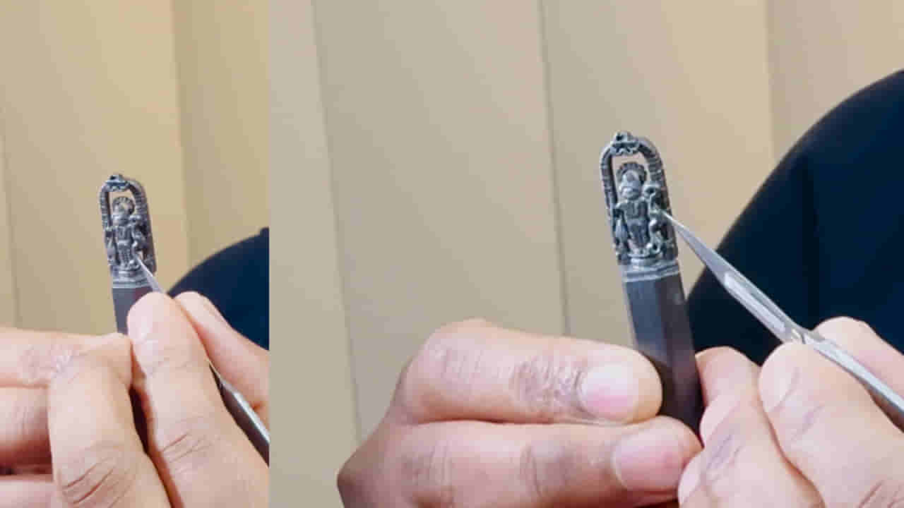 ఉమ్మడి విశాఖ జిల్లా పాయకరావుపేటకు చెందిన సూక్ష్మ కళాకారుడు గట్టం వెంకటేష్ పెన్సిల్ ముల్లుపై శ్రీరాముడి రూపాన్ని చెక్కాడు. రాముడి ఆకారం చిన్నదే అయినా పెన్సిల్ ముల్లుపై చెక్కడానికి సమయం చాలా ఎక్కువగా పడుతుంది. సుమారు ఆరు గంటలు శ్రమించి ఈ అందమైన శ్రీరాముడి రూపాన్ని తయారు చేశాడు వెంకటేష్. పలు సందర్బాల్లో తన ప్రతిభను చాటుకున్న వెంకటేష్ సూక్ష్మ కళాకారుల విభాగంలో గిన్నీస్ బుక్ ఆఫ్ రికార్డ్స్లో చోటు సంపాదించాడు. తాజాగా శ్రీరామ నవమి సందర్బంగా శ్రీరాముడి రూపాన్ని చెక్కి ప్రజలందరికీ శ్రీరామ నవమి శుభాకాంక్షలు తెలియజేసాడు.