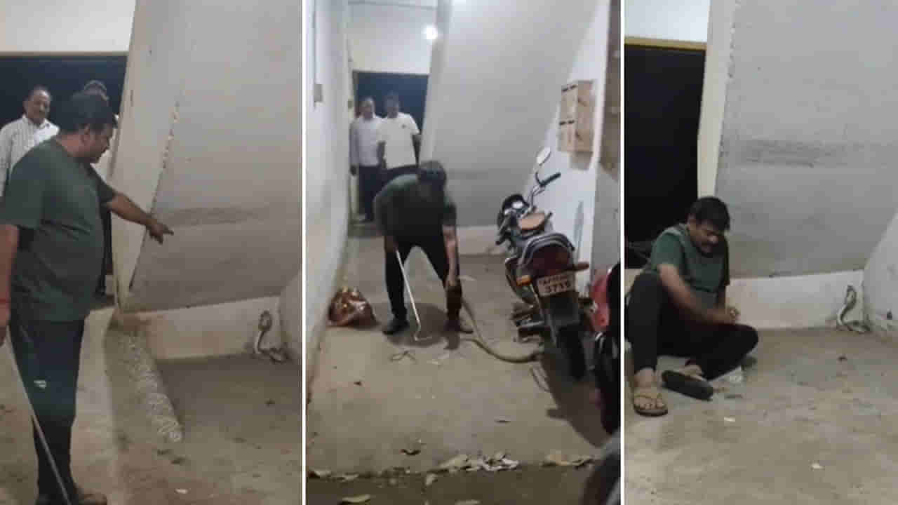 స్పాట్ కు చేరుకున్న కిరణ్.. నాగుపామును చాకచక్యంగా రెస్క్యూ చేశాడు. ఈ క్రమంలో అప్పటికే కోపంతో ఉన్న ఆ నాగుపాము.. పడగ విప్పి భారీ శబ్దంతో బుసలు కొడుతూ ఉంది. పామును పట్టుకున్న తర్వాత కూడా అది కోపంతో దాడి చేసేందుకు ఎదురు తిరిగింది. చాకచక్యంగా కిరణ్ పామును రెస్క్యూ చేసి బంధించారు. దీంతో అంతా ఊపిరి పీల్చుకున్నారు. జీవ వైవిధ్యంలో కీలక పాత్ర పోషించే పాములు ఎక్కడ కనిపించినా వాటికి హాని తలపెట్టకుండా సమాచారం ఇవ్వాలని కొడుతున్నాడు స్నేక్ కేచర్ కిరణ్..