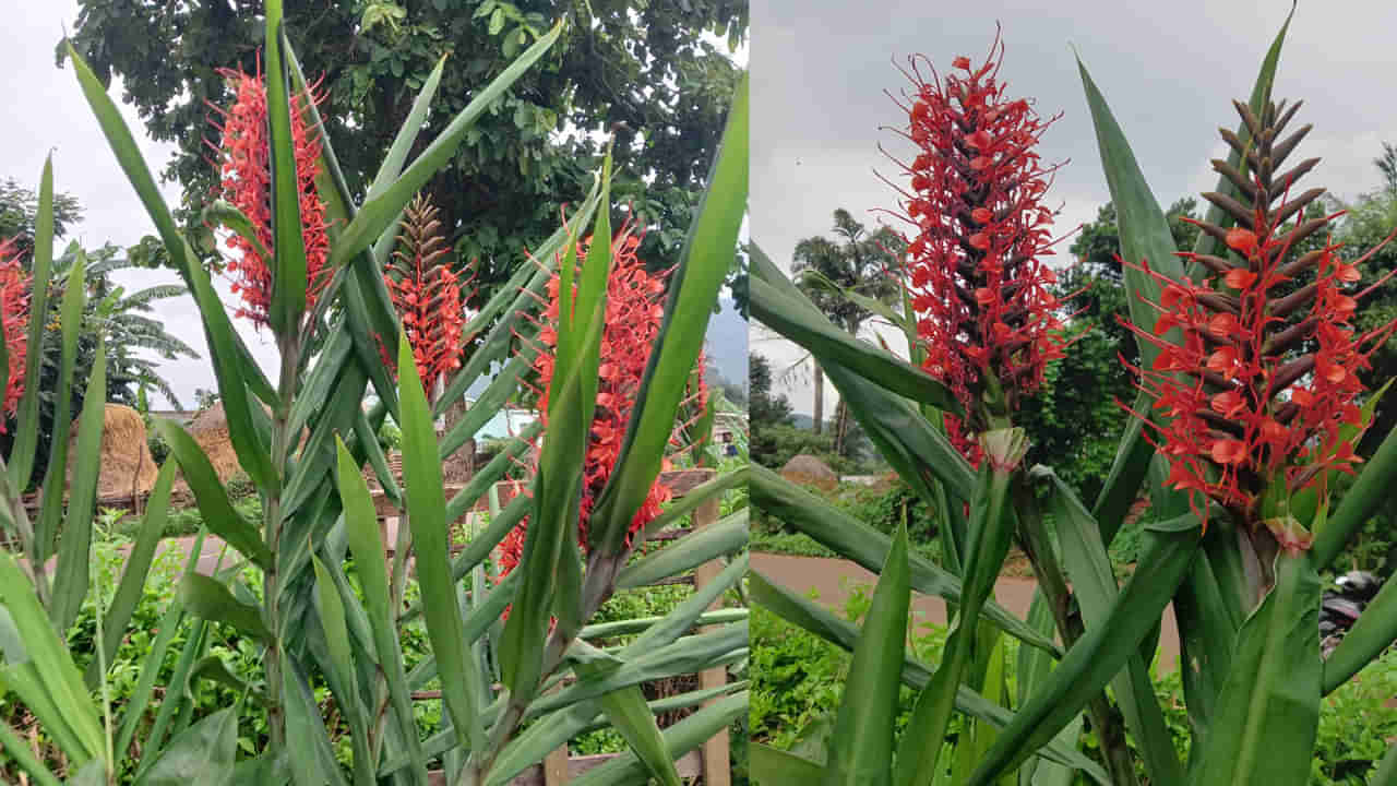 ప్రకృతిలో ఎన్నో రకాల వృక్షజాతులు ఉంటాయి.. ఒక్కో వృక్షానికి ఒక్కొక్క ప్రత్యేకత కలిగి ఉంటుంది. వాటిలో ప్రత్యేకమైనది బాటిల్స్ బ్రష్ జింజర్ ప్లాంట్స్. వెడల్పుగా నిగనిగలాడే ఆకుపచ్చ ఆకులతో.. దృఢమైన పొడవైన కాండాలను కలిగి ఉంటుంది ఈ చెట్టు. బాటిల్ బ్రష్ జింజర్ గా పేరుగాంచిన ఈ చెట్ల పూలు ఇప్పుడు చింతపల్లి ఏజెన్సీలో కనువిందు చేస్తున్నాయి. జి కే వీధి మండలం దుచ్చరి పాలెము గ్రామంలోని ఓ చర్చిలో ఈ పువ్వులు ప్రత్యేకంగా ఆకట్టుకుంటున్నాయి. పొడవాటి పచ్చని ఆకుల మధ్యలో నుంచి.. గుత్తుగా కాండానికి ఈ పూలు పుస్తూ ఉన్నాయి. ఎరుపు నారింజ వర్ణాల్లోని ఈ పూలు ఆకర్షిస్తూ ఉన్నాయి.