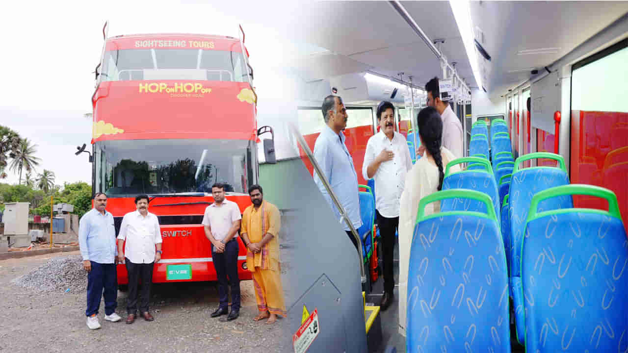 విశాఖ అంటేనే ప్రకృతి అందాలకు కేరాఫ్ అడ్రస్.. సుందరమైన బీచ్ ఆహ్లాదకరమైన వాతావరణంతో పాటు చూడముచ్చటైన పర్యాటక ప్రాంతాలు ప్రకృతి ప్రేమికులను కట్టిపడేస్తూ ఉంటాయి. అందుకే ఒకసారి వచ్చిన వాళ్ళు మళ్ళీ మళ్ళీ విశాఖ రావాలని కోరుకుంటూ ఉంటారు. అటువంటి వారి కోసం మరిన్ని సౌకర్యాలు కల్పించేలా ఏర్పాట్లు చేస్తుంది ఏపీ సర్కార్. చల్లని అద్దాల బస్సుల్లో విహరిస్తూ ప్రకృతి అందాలను వీక్షించేందుకు ఏర్పాట్లను ముమ్మరం చేసింది. ఇందులో భాగంగానే పర్యాటక శాఖ మంత్రి కందుల దుర్గేష్ విశాఖలో పర్యటించారు. విశాఖలో త్వరలోనే ప్రారంభంగానున్న డబుల్ డెక్కర్ ఈవీ బస్సులను పరిశీలించారు. పర్యాటక ఆకర్షణగా నిలవబోతున్న హప్ ఆన్, హప్ ఆఫ్ ఎలక్ట్రిక్ డబుల్ డెక్కర్ బస్సులు త్వరలోనే విశాఖ నగరంలో సేవలందించనున్నాయని తెలిపారు మంత్రి. పర్యాటకులకు, నగరవాసులకు అనుభూతి భరితమైన, పర్యావరణహితమైన ప్రయాణాన్ని అందిస్తాయన్నారు. డబులు డెక్కర్ బస్సులు విశాఖ పర్యాటక రంగాన్ని కొత్త దిశలో తీసుకెళ్తుందని మంత్రి కందుల దుర్గేష్ ఆశాభావం వ్యక్తం చేశారు.