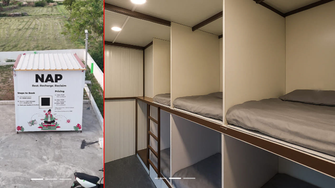 వీటన్నిటికీ ఒక చిన్న ఐడియా తో చెక్ పెట్టారు పవర్ నాప్ డాట్ కామ్ అనే కంపెనీ. హైవేలో చిన్న చిన్న కంటైనర్లను ఏర్పాటు చేశారు. ఇందులో ఏసీ, మంచి బెడ్స్, కప్పుకోవడానికి దుప్పట్లు అన్నీ ఉంటాయి. getpowernap.com అనే వెబ్సైట్లో మీరు ఏ హైవే లో వెళ్తున్నారో ఎంటర్ చేస్తే దగ్గరలో ఉన్న పవర్ నాప్ కంటైనర్ మీకు చూపిస్తుంది. గంటసేపు మీరు ఈ కంటైనర్లో పడుకోవాలంటే కేవలం 99 రూపాయలు కడితే చాలు. ఆన్ లైన్ లో పేమెంట్ చేసిన వెంటనే మీకు పాస్ కోడ్ వస్తుంది. అది కంటైనర్ కున్న నెంబర్ లాకింగ్ లో ఎంటర్ చేస్తే డోర్ ఓపెన్ అవుతుంది. గంటపాటు మీరు హ్యాపీగా నిద్రపోవచ్చు.