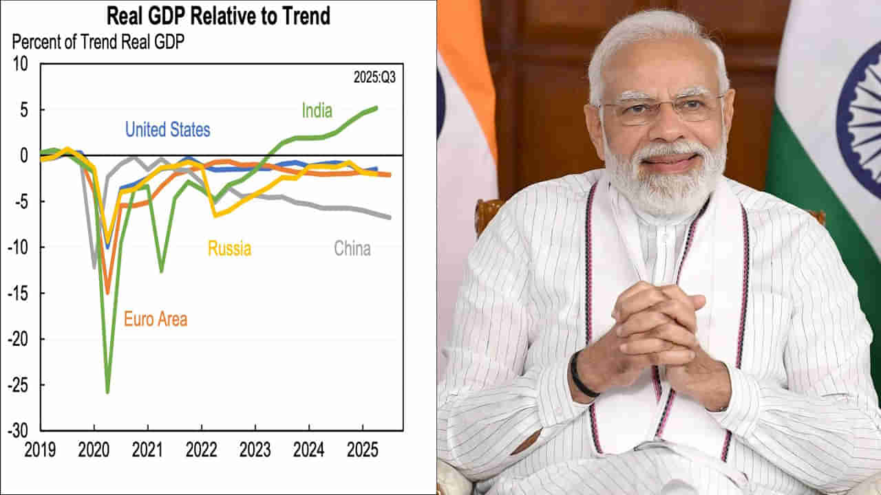హార్వర్డ్ ఆర్థికవేత్త జాసన్ ఫర్మాన్ భారత ఆర్థిక పనితీరును వివరించారు. ఎక్స్ వేదికగా ఆయన పోస్ట్ చేసిన వృద్ధి చార్ట్లో ఈ విషయం వెల్లడించారు. కొన్ని భౌగోళిక రాజకీయంగా సంబంధిత ఆర్థిక వ్యవస్థలు వాటి పూర్వ-COVID ధోరణులకు సంబంధించి ఎలా పనిచేస్తున్నాయి అని ఫుర్మాన్ రాశారు. 2019 నుండి Q3 2025 వరకు యూఎస్, యూరప్, చైనా, రష్యా, భారత్ కోసం ప్రీ-పాండమిక్ ధోరణుల శాతంగా వాస్తవ GDPని పోల్చిన గ్రాఫ్ను పోస్ట్ చేశారు.