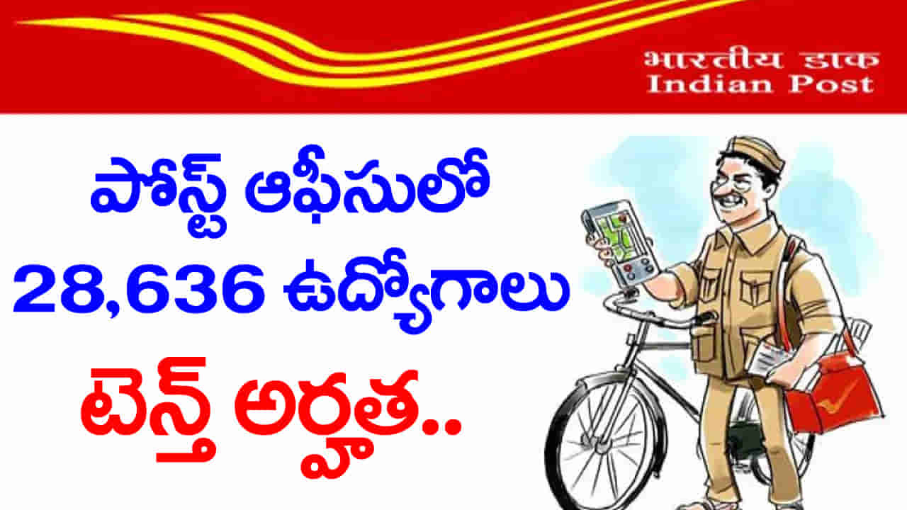 తపాలా ఖాఖలో 28,636 ఉద్యోగాలకు ఆన్లైన్ దరఖాస్తు కోసం ఇక్కడ క్లిక్ చేయండి.