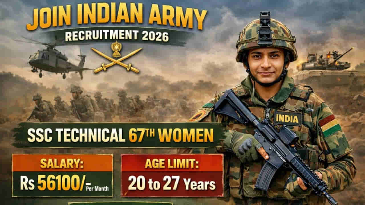 అలాగే అభ్యర్ధుల వయసు అక్టోబర్ 1, 2026వ తేదీ నాటికి 20 నుంచి 27 ఏళ్ల మధ్య ఉండాలి. ఈ అర్హతలు ఉన్న వారు ఫిబ్రవరి 5, 2026వ తేదీ వరకు దరఖాస్తు చేసుకోవచ్చు. ఎంపికైన వారికి ప్రి-కమిషనింగ్ ట్రైనింగ్ అకాడమీ (PCTA) లో కోర్సు ప్రవేశాలు జరుగుతుంది. మొత్తం 49 వారాల పాటు అక్టోబర్ 2026 నుంచి సెప్టెంబర్ 2027 వరకు శిక్షణ ఉంటుంది. ట్రైనింగ్ సమయంలో నెలకు రూ.50.100 వరకు స్టైపెండ్ చెల్లిస్తారు. ఇండియన్ ఆర్మీ – 67వ షార్ట్ సర్వీస్ కమిషన్ (టెక్) కోర్సుకు సంబంధించిన ఫిజికల్ స్టాండర్డ్స్, వయోపరిమితి, జీతం, ఎంపిక విధానం, దరఖాస్తు విధానం, పీసీటీఏ, ఇంటర్వ్యూ కేంద్రాలు వంటి తదితరాల పూర్తి వివరాలు త్వరలోనే విడుదల చేయనున్న వివరణాత్మక నోటిఫికేషన్లో చెక్ చేసుకోవచ్చు.