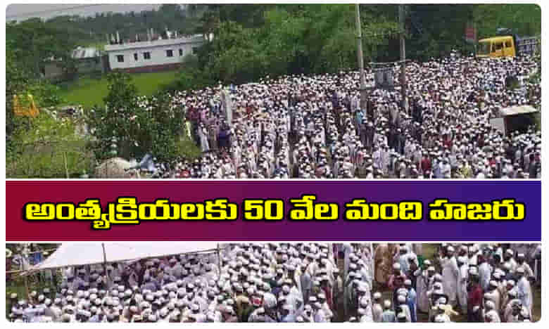 వివరాల్లోకి వెళ్తే.. బంగ్లాదేశ్ ఖలీఫత్ మజ్లిస్ నయీబ్ ఈ ఆమిరైన మౌలానా జుబెయిర్ అహ్మద్ అన్సారీ (55) శుక్రవారం సరైల్ ఉపజిలాలోని బెర్తెలా గ్రామలో కన్నుమూశారు. ఇక స్థానిక మదర్సాలో శనివారం నాడు ఆయన అంత్యక్రియలను నిర్వహించారు. దీనికి ప్రభుత్వం నుంచి అనుమతి లేకపోయినా.. ఢాకాతో సహా చుట్టుప్రక్కల ఉన్న పలు ప్రాంతాల నుంచి ఊహించని రీతిలో వేలాది మంది ప్రజలు ఈ కార్యక్రమానికి హాజరయ్యారు. కరోనా కారణంగా ప్రభుత్వం నిర్దేశించిన సామాజిక దూరాన్ని కూడా పాటించకుండా ఏకంగా 50 వేలు పైగా ప్రజలు హాజరయ్యారని అక్కడి మీడియా పేర్కొంది.