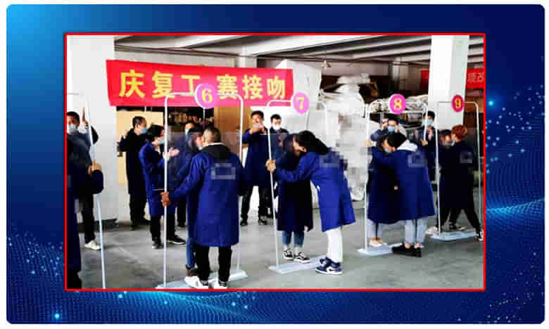#China A furniture factory in Suzhou, Jiangsu had a “Kissing Contest” to celebrate the factory resuming work.