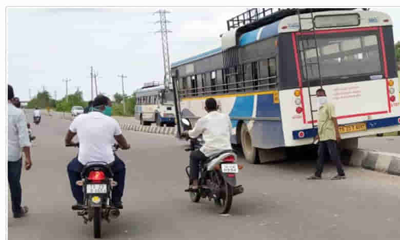 సిరిసిల్ల డిపోకు చెందిన నాన్స్టాప్ ఆర్టీసీ బస్సు శుక్రవారం కరీంనగర్ నుంచి సిరిసిల్లకు బయలుదేరింది. వేములవాడ మండలం అగ్రహారం సమీపంలోని కరీంనగర్ పాల డెయిరీ వద్దకు రాగానే.. డ్రైవర్ స్టీరింగ్ విడిచి పెట్టి చేతులకు శానిటైజర్ రాసుకుంటున్నాడు. ఇంతలో బస్సు అదుపుతప్పి డివైడర్ మీదకు దూసుకుపోయింది. వెంటనే అప్రమత్తమైన డ్రైవర్ బస్సును ఆపేశాడు. కాగా బస్సులో దాదాపు 20 మంది వరకు ఉన్నట్లు ప్రయాణికులు వెల్లడించారు. ప్రమాదం నుంచి బయటపడడంతో బస్సులో ఉన్నవారంతా ఊపిరి పీల్చుకున్నారు.