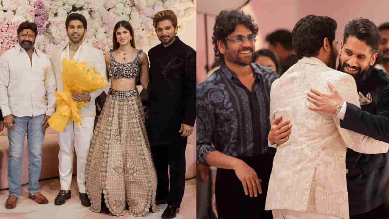 అల్లు శిరీష్, నయనికల ప్రీ వెడ్డింగ్ రిసెప్షన్ వేడుకలో అక్కినేని ఫ్యామిలీ, నందమూరి ఫ్యామిలీ, మెగా ఫ్యామిలీ సందడి చేశారు. అక్కినేని నాగార్జున, నాగ చైతన్య, అమల హాజరయ్యారు. వీరిని అల్లు అరవింద్ ఆప్యాయంగా ఆహ్వానించారు. అలాగే రామ్ చరణ్, సురేఖ కొణిదెల, సుష్మిత, నాగబాబు, సాయి ధరమ్ తేజ్, వైష్ణవ్ తేజ్ హాజరయ్యారు. మరోవైపు నందమూరి బాలకృష్ణ, మంచు మోహన్ బాబు, రాజేంద్ర ప్రసాద్, యానిమల్ డైరెక్టర్ సందీప్ రెడ్డి వంగా, డైరెక్టర్ అట్లీ, మలయాళీ నటుడు బాసిల్ జోసేఫ్ వంటి ప్రముఖులు హాజరయ్యారు. సీనియర్ నటీనటులు, దర్శకులు రాఘవేంద్రరావు, బి.గోపాల్, కోదండ రామిరెడ్డి, సి.అశ్వనీదత్, దగ్గుబాటి సురేష్ బాబు, శ్యామ్ ప్రసాద్ రెడ్డి, డీవీవీ దానయ్య కనిపించారు.