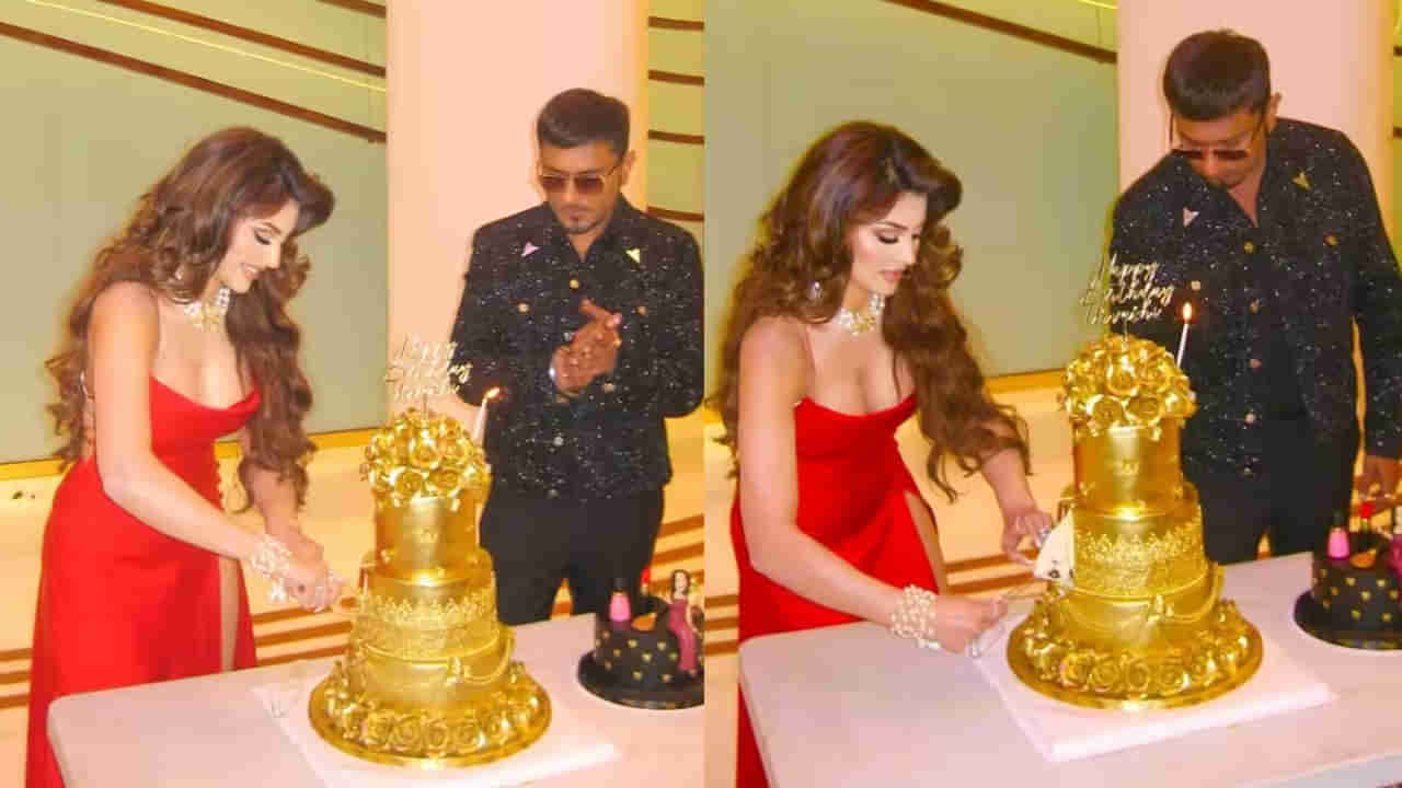 బాలీవుడ్ సినీ తారలలో ఊర్వశి రౌతేలా ఒకరు. హీరోయిన్గా కాకుండా సినిమాల్లో స్పెషల్ సాంగ్స్ చేసి ఈ బ్యూటీ బాగా ఫేమస్ అయ్యింది. హిందీలో అనేక సినిమాల్లో స్టార్ హీరోలతో ఆడిపాడి అలరించింది. గత ఏడాదిగా తెలుగు సినిమాల్లోనూ కనిపిస్తుంది. మెగాస్టార్ చిరంజీవి నటించిన వాల్తేరు వీరయ్య సినిమాలో బాస్ పార్టీ పాటకు స్టెప్పులేసింది. అలాగే రామ్ పోతినేని నటించిన స్కంద సినిమాలోనూ స్పెషల్ సాంగ్ చేసింది. ఊర్వశి రౌతేలా నిత్యం ఏదోక వార్తతో వార్తలలో నిలుస్తుంటుంది. కొన్ని నెలల క్రితం క్రికెటర్ గురించి ఆసక్తికర ట్వీట్స్ చేసి అతడి అభిమానులకు కోపం తెప్పించింది. అలాగే క్రికెట్ స్టేడియంలో తన ఫోన్ పోయిందంటూ నానా హంగామా సృష్టించింది. దీంతో కేవలం ఆమె పబ్లిసిటీ కోసమే ఇదంతా చేస్తుందంటూ నెటిజన్స్ మండిపడ్డారు. ఇక కొన్నాళ్లుగా సైలెంట్ గా ఉన్న ఈ ముద్దుగుమ్మ.. ఇప్పుడు మరోసారి వార్తలలో నిలిచింది. తన బర్త్ డేకు బంగారపు కేక్ కట్ చేసి అందరిని ఆశ్చర్యపరిచింది.