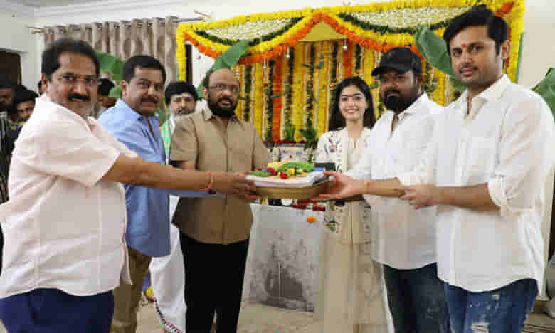 ‘ఛలో’ ఫేమ్ వెంకీ కుడుముల దర్శకత్వంలో నితిన్ నటించబోయే చిత్రం ‘భీష్మ’. రష్మిక హీరోయిన్గా కనిపించబోతున్న ఈ చిత్రం.. తాజాగా పూజా కార్యక్రమాలను పూర్తి చేసుకుంది. హైదరాబాద్లో జరిగిన ఈ మూవీ పూజా కార్యక్రమంలో చిత్ర యూనిట్ పాల్గొంది. రొమాంటిక్ లవ్ స్టోరీగా తెరకెక్కబోతున్న ఈ చిత్రాన్ని సితార ఎంటర్టైన్మెంట్స్ నిర్మించనున్నారు. మహిత్ సాగర్ సంగీతం అందించనున్న ఈ మూవీ జూన్ 20న సెట్స్ మీదకు వెళ్లనుంది. అఆ తరువాత మళ్లీ హ్యాట్రిక్ ఫ్లాప్తో డీలా పడ్డ నితిన్.. ఈ మూవీపై మంచి అంచనాలే పెట్టుకున్నాడు.