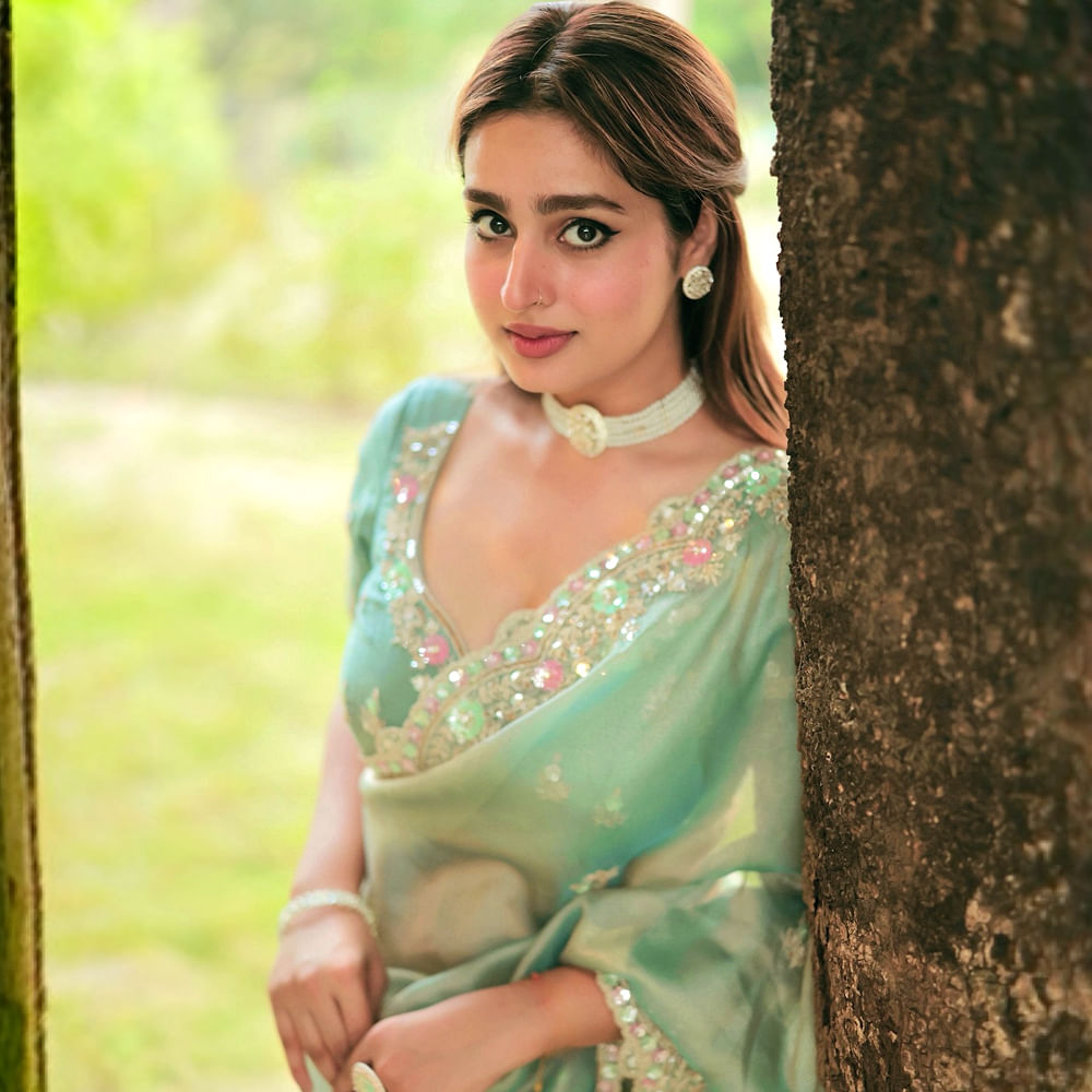అయేషా ముంబైలో నివసిస్తుంది. సోషల్ మీడియాలో యాక్టివ్గా ఉంటుంది. ఈ బ్యూటీ తన ఫ్యాషన్, డ్యాన్స్ వీడియోలతో అభిమానులను ఆకర్షిస్తుంది. తాజాగా చీరకట్టులోనూ ఓ బ్యూటీ నటించి మెప్పిస్తుంది.