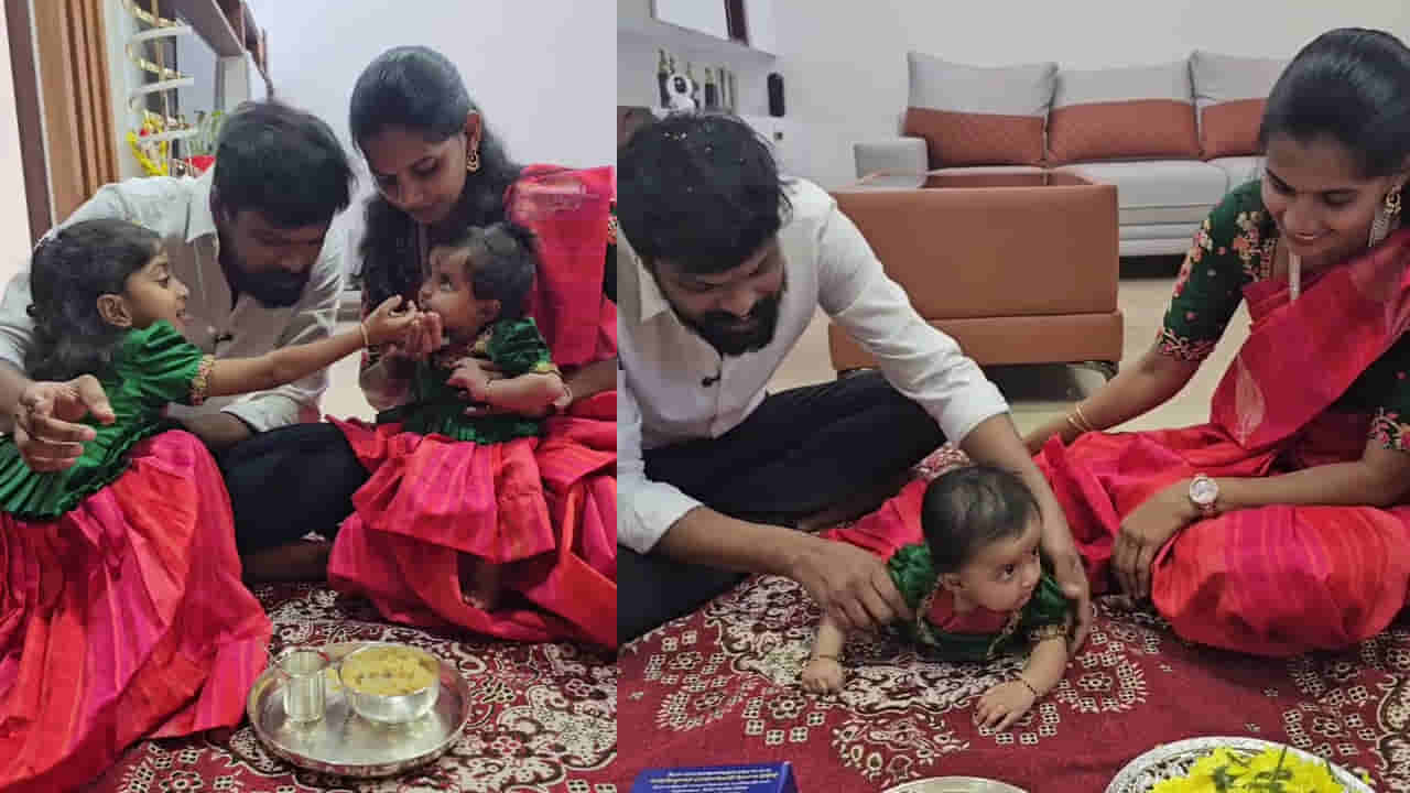తాజగా తమ ముద్దుల కూతురికి అన్నప్రాశన వేడుక నిర్వహించారు ఆది రెడ్డి దంపతులు. కాగా అన్నప్రాశన సమయంలో నగలు, డబ్బు, పుస్తకము, కలము, ఆయుధము, పూలు మొదలైన బిడ్డ దగ్గర వదులుతారు. ఈ క్రమంలో ఆది రెడ్డి కూతురు డబ్బులు, నగలను కాదని డైరెక్టుగా భగవద్గీత పుస్తకం దగ్గరకు వెళ్లింది. ఇందుకు సంబంధించిన వీడియోను సామాజిక మాధ్యమాల్లో షేర్ చేశారు ఆది రెడ్డి దంపతులు. ‘ మా బిడ్డకి మీ ఆశీర్వాదాలు కావాలంటూ’ కోరారు. ప్రస్తుతం ఈ వీడియో సామాజిక మాధ్యమాల్లో వైరల్ గా మారింది. దీనిని చూసిన పలువురు సినీ ప్రముఖులు, అభిమానులు, నెటిజన్లు ఆది రెడ్డి దంపతులకు అభినందనలు, శుభాకాంక్షలు తెలుపుతున్నారు.