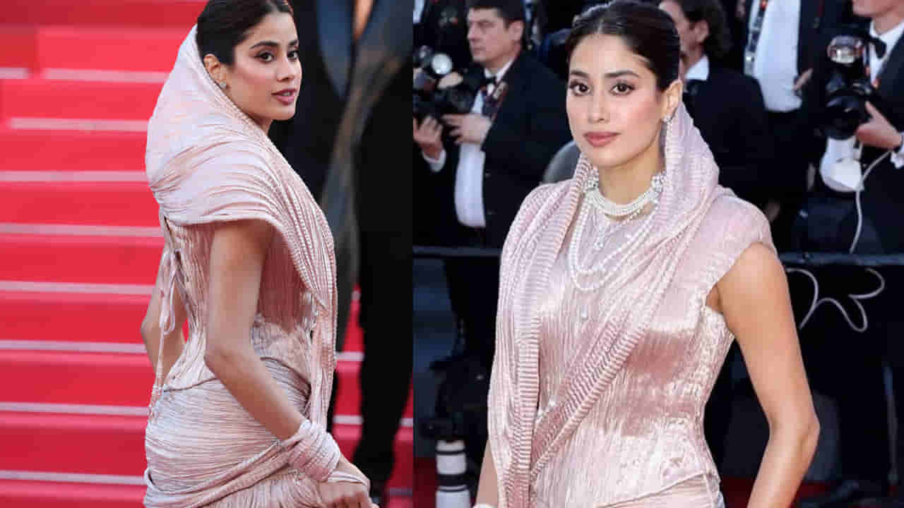 ఫ్రాన్స్ వేదికగా కేన్స్ ఫిల్మ్ ఫెస్టివల్ అట్టహాసంగా జరుగుతోంది. మే 13న ప్రారంభమైన ఈ ఈవెంట్ లో ఐశ్వర్యా రాయ్, ఊర్వశి రౌతెలా, దిశా మదన్ తదితర భారతీయ ముద్దుగుమ్మలు తళుక్కుమన్నారు. రెడ్ కార్పెట్ పై నడిచి కెమెరాలకు పోజులిచ్చారు. తాజాగా బాలీవుడ్ అందాల తార జాన్వీ కపూర్ కేన్స్ ఫిల్మ్ ఫెస్టివల్ కు హాజరైంది. ఈ సందదర్భంగా లేత గులాబీ పొడవాటి గౌన్ను ధరించిన ఆమె రెడ్ కార్పెట్పై హొయలొలికించింది. తన స్టైలిష్ అండ్ ట్రెడిషినల్ లుక్ తో తన తల్లి శ్రీదేవిని గుర్తుచేసింది. అలాగే భారతీయ సంప్రదాయాన్ని చాటి చెప్పింది. ప్రస్తుతం కేన్స్ లో జాన్వీ కపూర్ లుక్ కు సంబంధించిన ఫొటోలు నెటిజన్లను అమితంగా ఆకట్టుకుంటున్నాయి. కాగా ఈ ఫిల్మ్ ఫెస్టివల్ లో జాన్వీ ప్రధాన పాత్రలో నటించిన ‘హోమ్బౌండ్’ మూవీ స్పెషల్ స్క్రీనింగ్ కు ఎంపికైంది. ఈ క్రమంలోనే జాన్వీతో పాటు ఈమూవీలో నటించిన