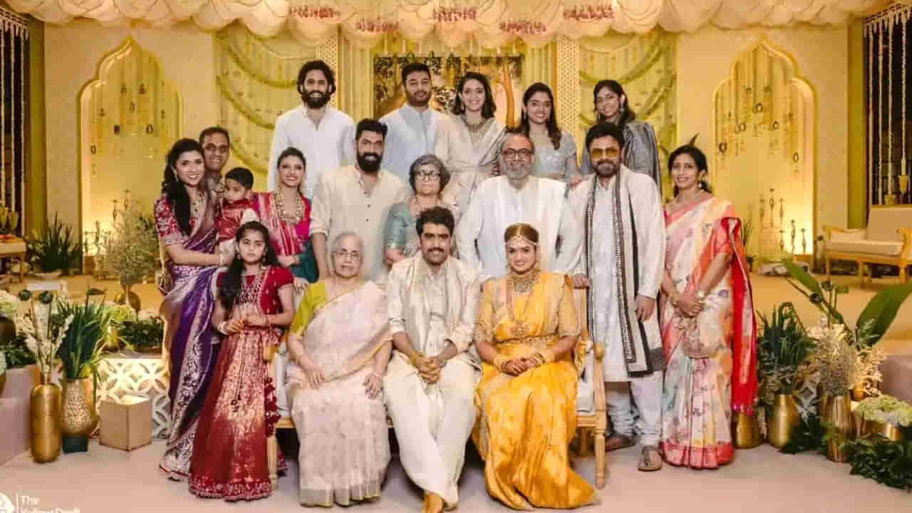 కొంతమంది అతిథులు, కుటుంబ సభ్యుల మధ్య వీరి వివాహం జరిగింది. ఇక ఈ వివాహవేడుకలో దగ్గుబాటి ఫ్యామిలీ అంతా కలిసి దిగిన ఫోటో ఇప్పుడు సోషల్ మీడియాలో వైరల్ గా మారింది. ఈ ఫొటోలో వెంకటేష్ ఆయన భార్య ఇద్దరు కూతుర్లు కనిపించారు. అలాగే సురేష్ బాబు ఆయన సతీమణి, రానా ఆయన భార్య కనిపించారు. అలాగే హీరో నాగ చైతన్య కూడా కనిపించాడు.